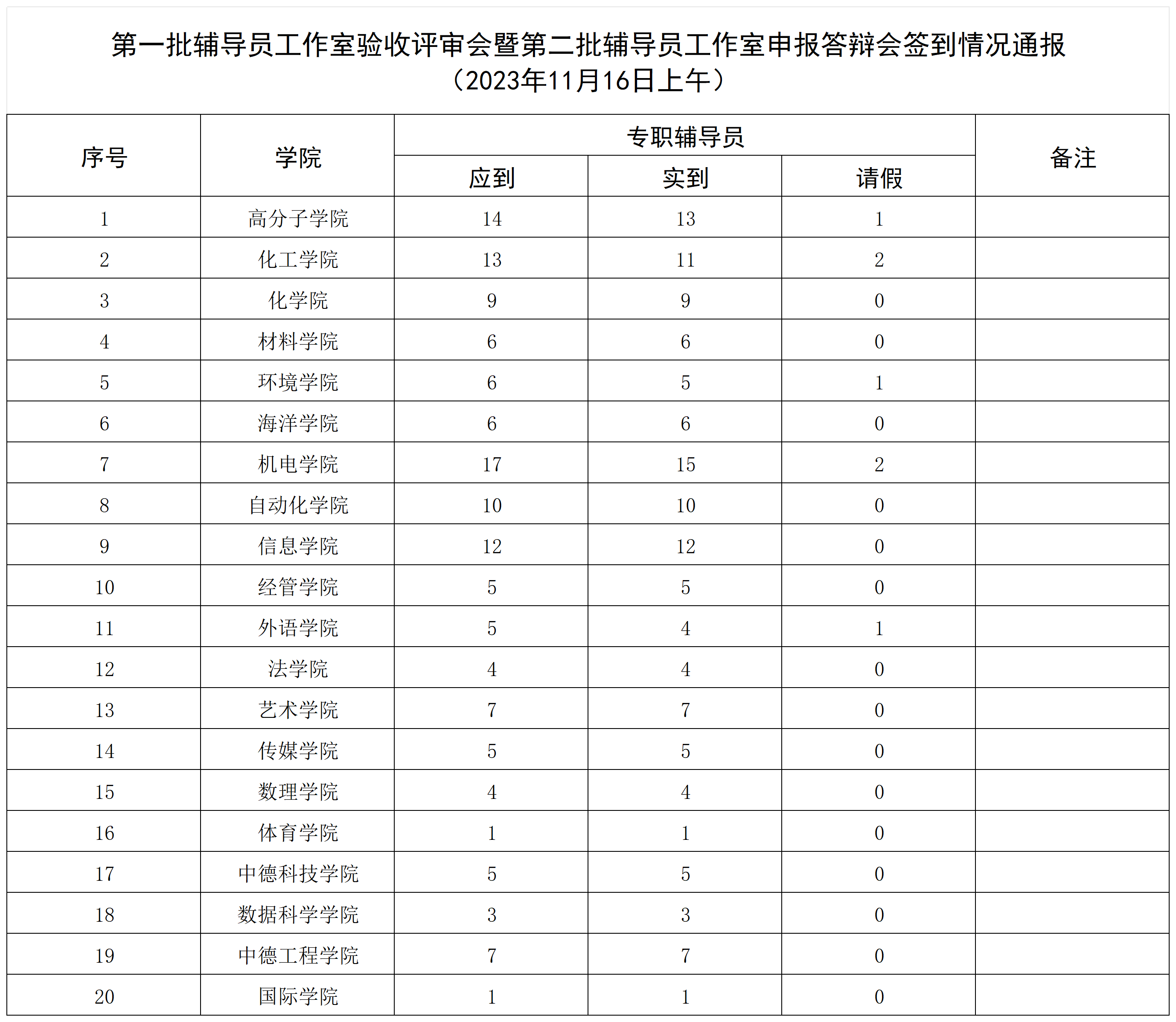 第一批辅导员工作室验收评审会暨第二批辅导员工作室申报答辩会签到情况通报