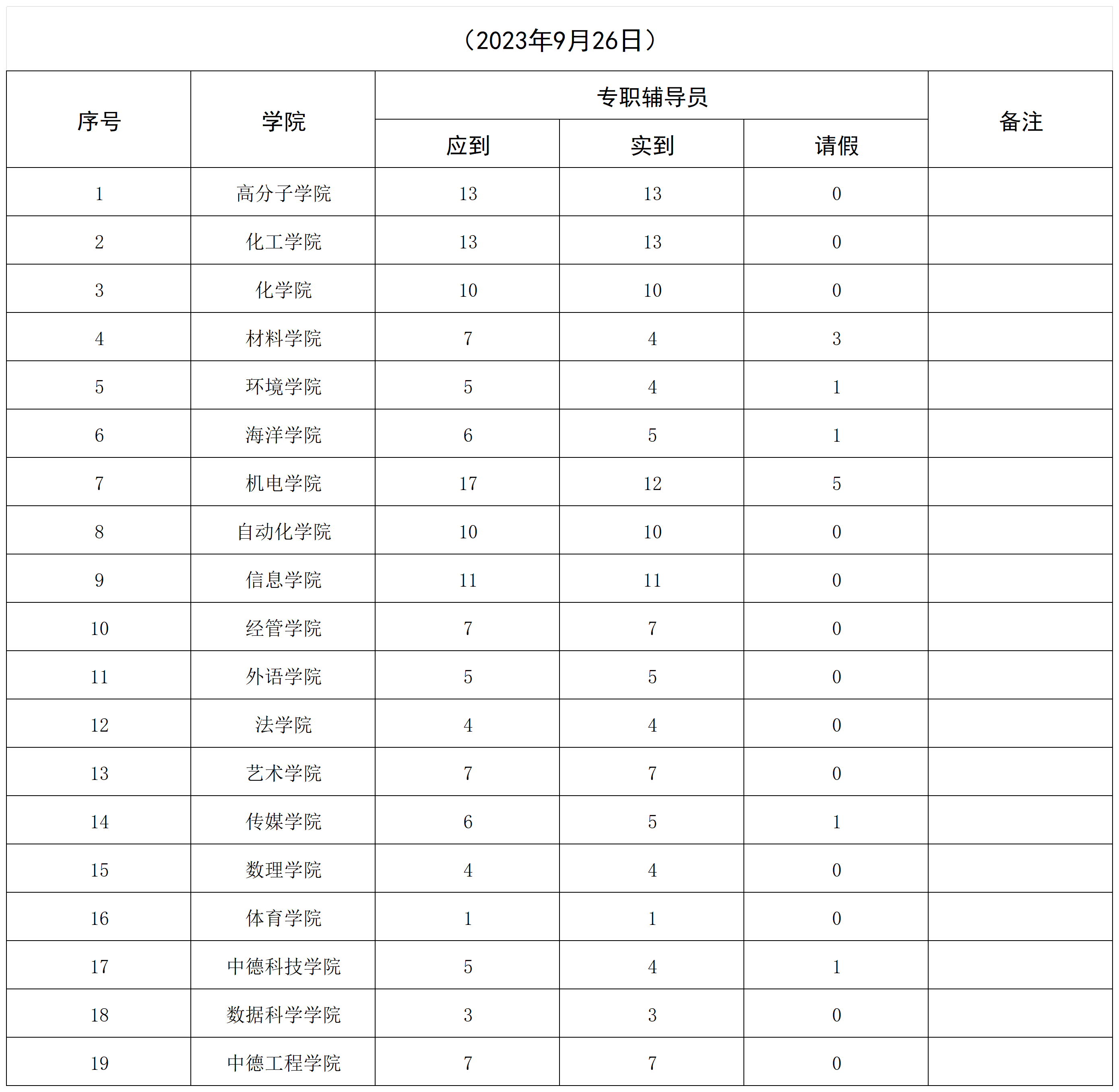 “两化四有”辅导员素质能力提升培训会签到情况通报