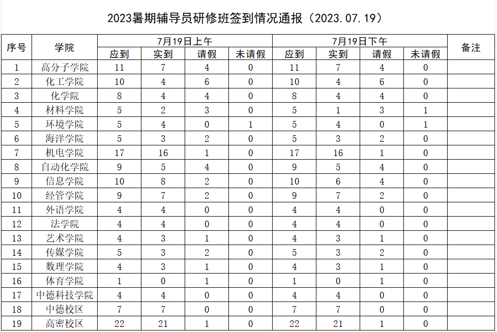 2023年暑期辅导员研修班签到情况通报(7月19日)