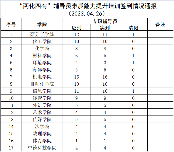 “两化四有”辅导员素质能力提升培训签到情况通报