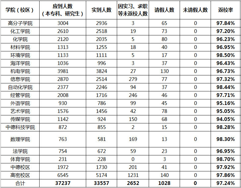 2022年春季学期学生返校情况统计(截至2月27日)