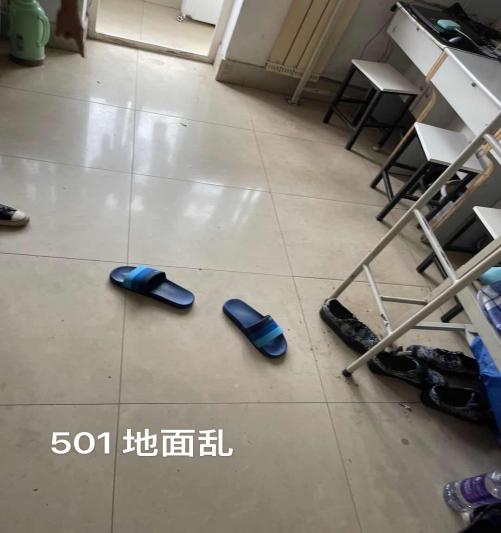 1、南10舍501宿舍卫生未打扫,被子未叠。