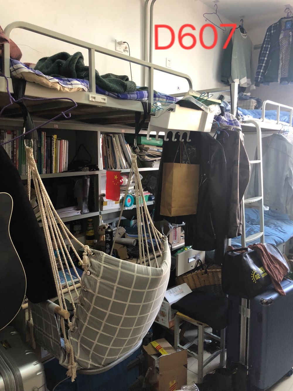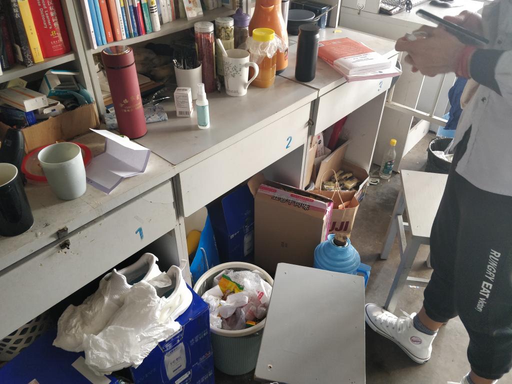 1、22号甲楼D区607宿舍私搭乱挂、屋内凌乱。