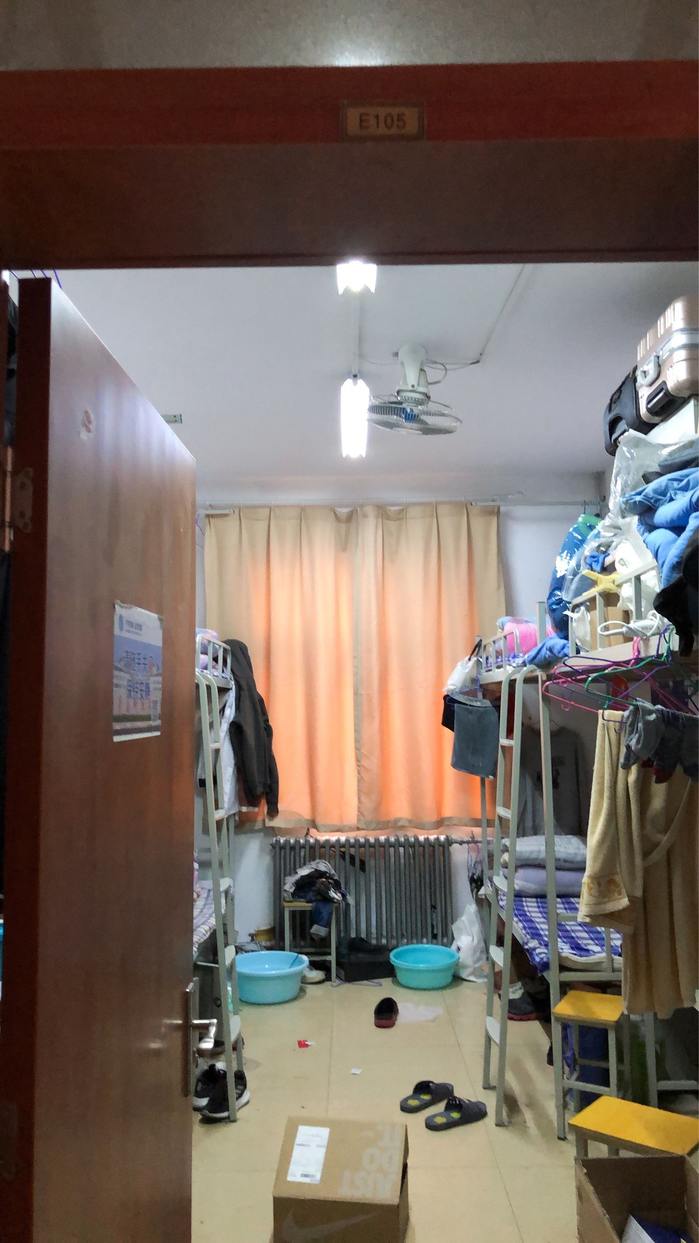 2、22号甲楼E区105宿舍卫生未打扫。