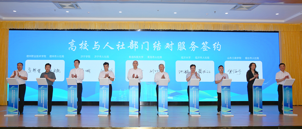 人力资源和社会保障部、山东省有关部门负责同志,山东省人社厅有关部门、省内部分高校、驻青高校有关部门、青岛市人社局有关部门、各区市人社局负责同志,学校党委领导班子成员丁林、张洪坤、朱敬义,有关部门、学院负责人,驻青高校2025届、2026届毕业生参加活动。