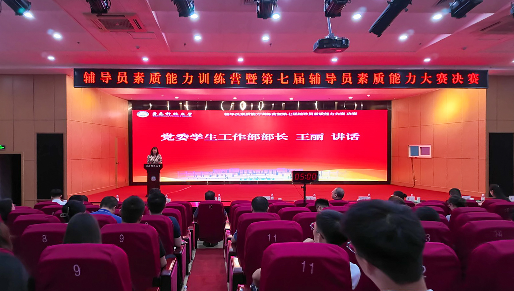 7月4日,学校辅导员素质能力训练营暨第七届辅导员素质能力大赛决赛在崂山校区举行。党委常委、副校长丁林出席。