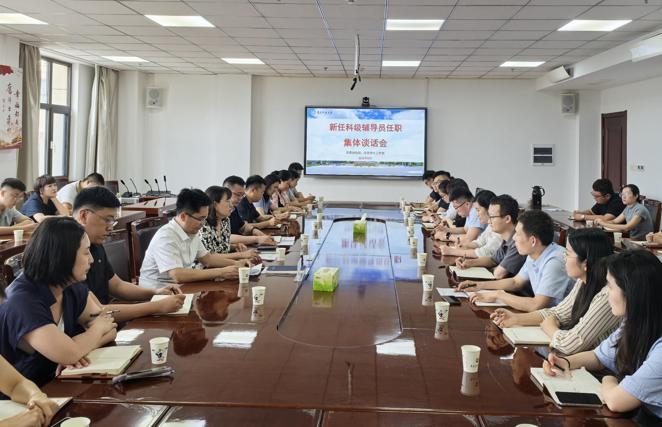8月26日下午,学校在崂山校区综合服务楼3015会议室召开新任科级辅导员任职集体谈话会,党委学生工作部部长王丽出席会议并讲话。