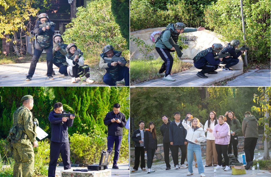 本次培训分两批次开展,培训紧扣国防教育和团队合作主题,将培训场地移至户外,通过沉浸式、体验式、实战化的训练项目,为辅导员队伍带来了一次别开生面的能力淬炼。培训包括模拟射击、定点投掷、真人攻防对抗等项目。