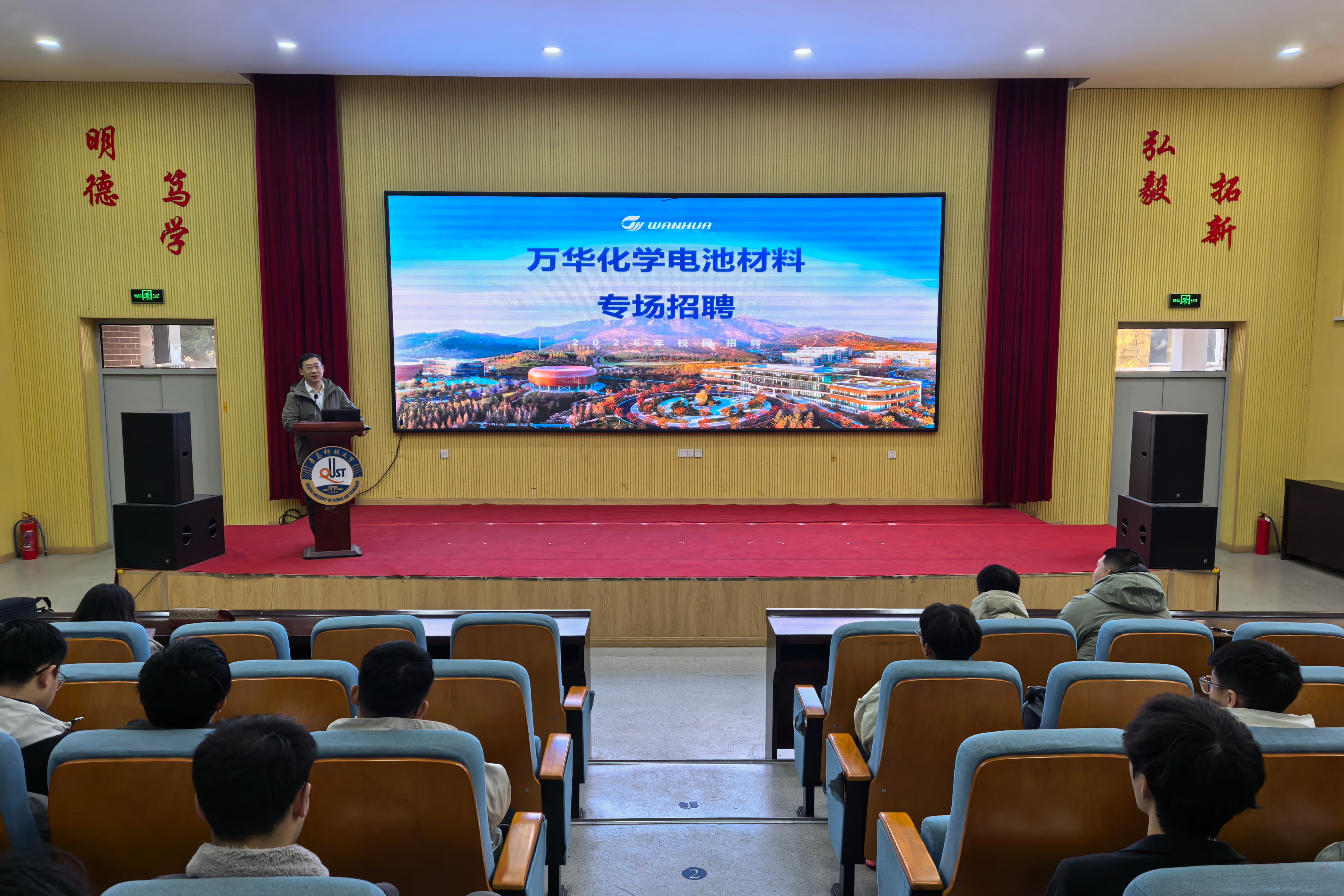 12月25日,万华化学集团招聘经理白朔一行走进学校四方校区与崂山校区,开展电池材料专场招聘宣讲。宣讲会系统介绍了集团最新战略布局、发展概况及人才需求方向,并诚挚邀请更多青科大学子加入,共同助力我国从“化工大国”迈向“化工强国”。