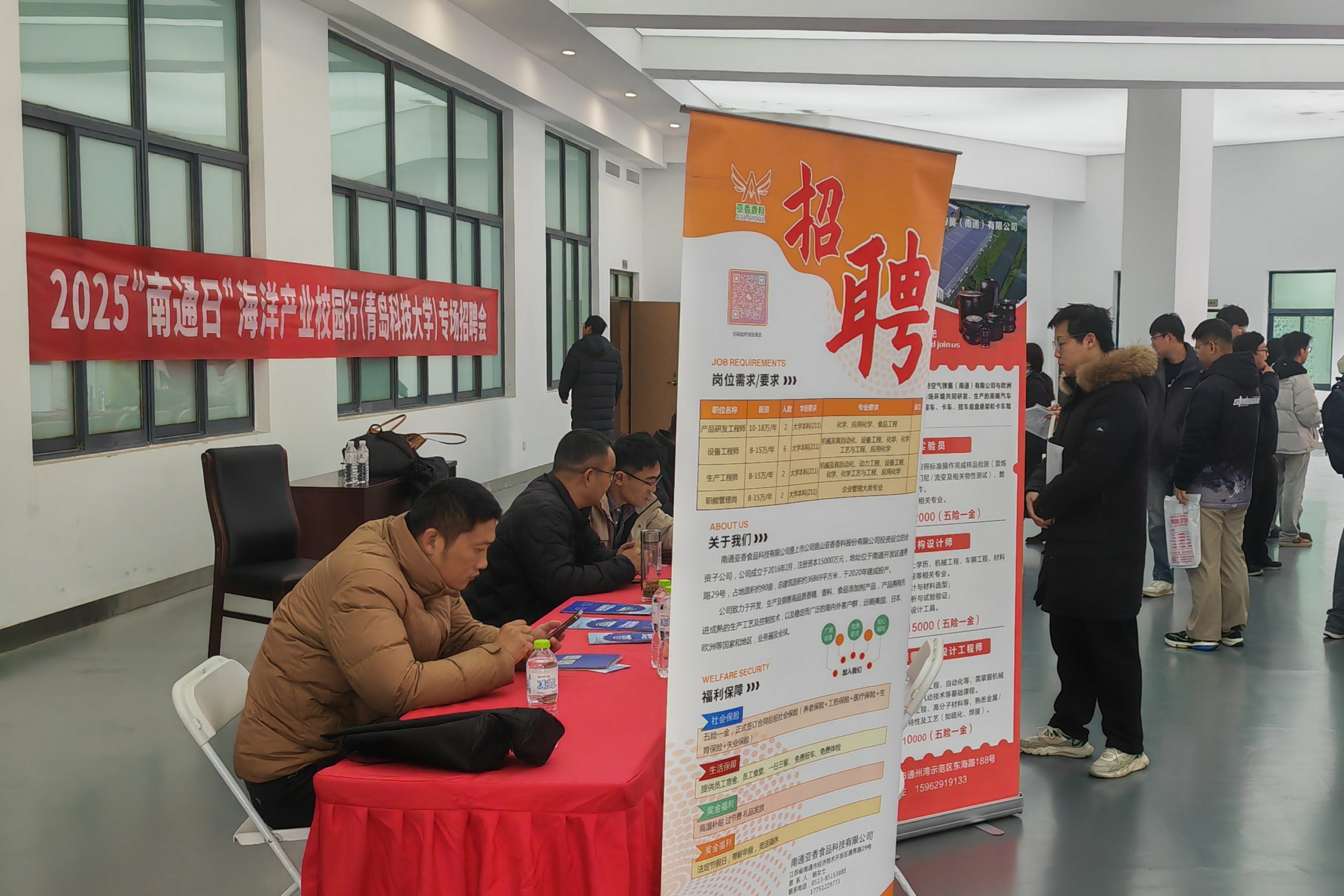 12月29日,江苏“南通日”秋季高校毕业生专场招聘会在崂山校区举办。中天科技、远东海缆等23家优质企业携700余个岗位来校揽才,覆盖机械、自动化、材料、计算机、法学、经济类等多个专业领域。现场气氛热烈,毕业生踊跃投递简历、积极咨询,展现出务实积极的求职风貌。南通市人社部门相关负责人表示:“青科大组织高效、服务到位,我们已连续三年来校招聘。学校主动对接地方需求,为企业和毕业生搭建了高质量的双向对接平台,后续我们将继续深化交流合作。”