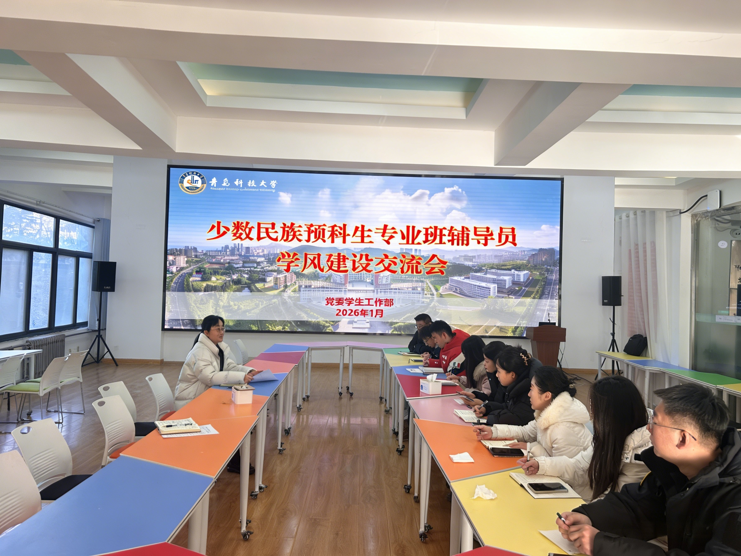 1月21日上午,学校在崂山校区心理中心组织召开少数民族预科生专业班辅导员学风建设交流会。党委学生工作部副部长尤亭亭出席会议并讲话,全体预科生辅导员参加会议。