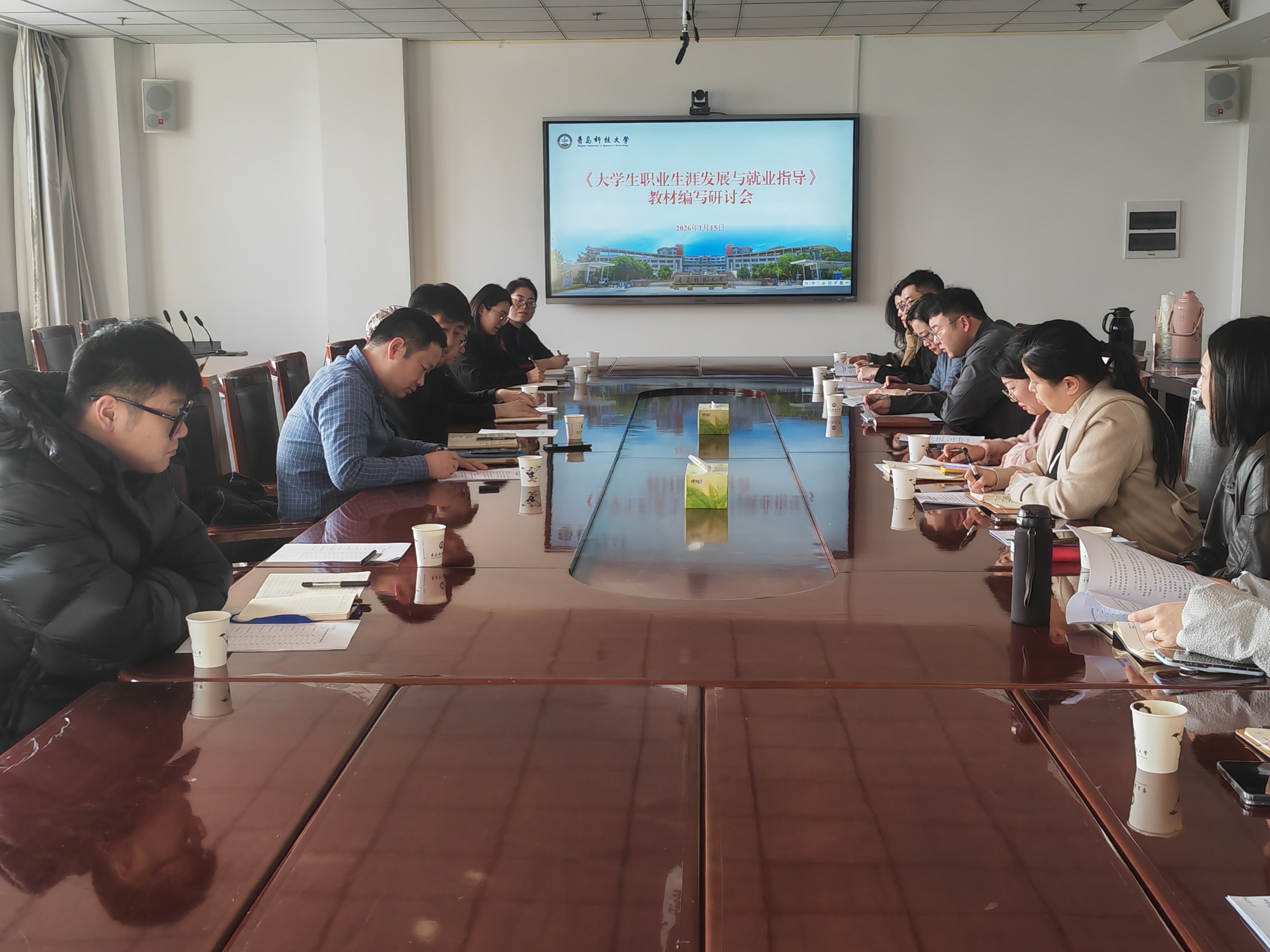 为全面推进就业指导课程体系建设,提高教学质量,1月15日,学校召开《大学生职业生涯发展与就业指导》教材编写研讨会。党委学生工作部副部长徐华、就业指导中心相关人员、编写组成员参加会议。