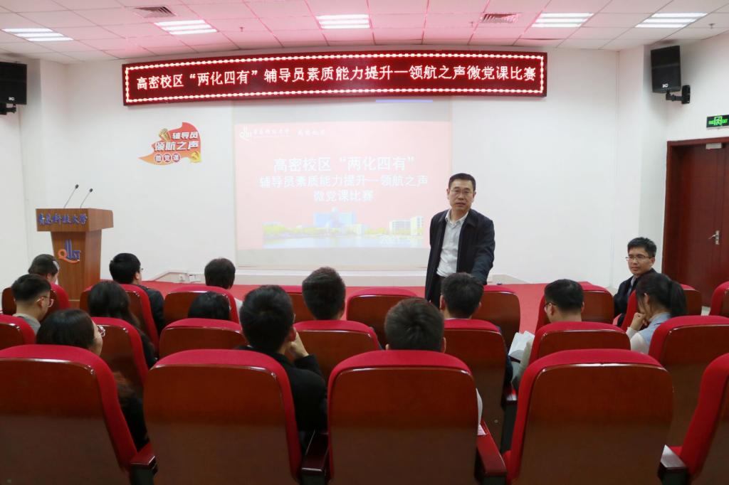 5月11日,高密校区辅导员讲党史启动“领航之声”精品微党课创建活动。高密校区管理委员会常务副主任梁树清出席活动。学团办、思政教研室老师,80名学生代表担任本次比赛评委。