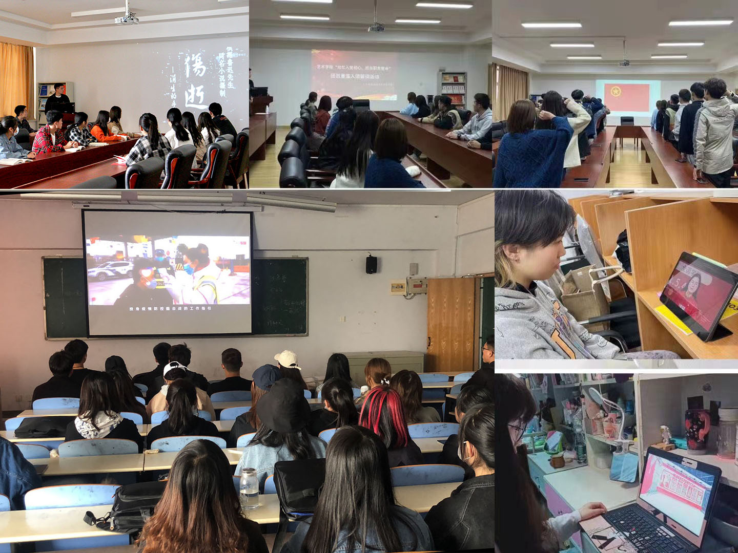 为扎实开展党史学习教育,庆祝中国共产党成立100周年,纪念五四运动102周年,在五四青年节到来之际,艺术学院积极开展“青春同心 ‘艺’心向党”主题教育系列活动,激励广大团员青年弘扬五四精神,继承优良爱国主义传统,担当时代责任,争做青年先锋。