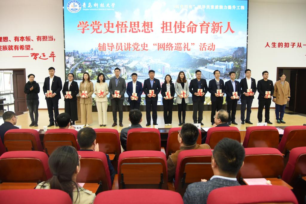 校团委书记毛常明、党委宣传部副部长李鲲鹏为辅导员讲党史“网络巡礼”活动揭牌。