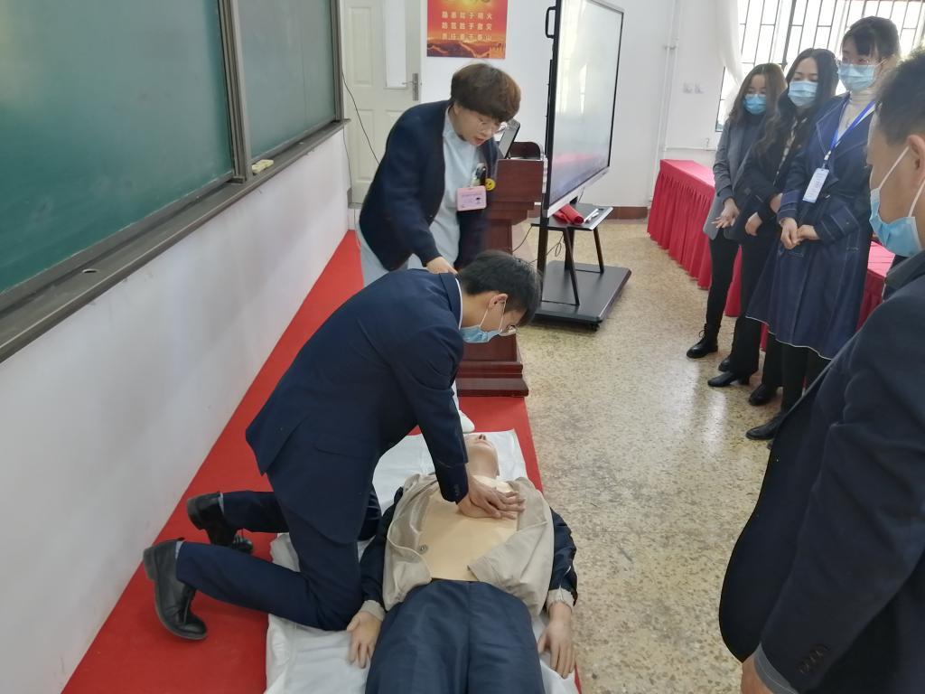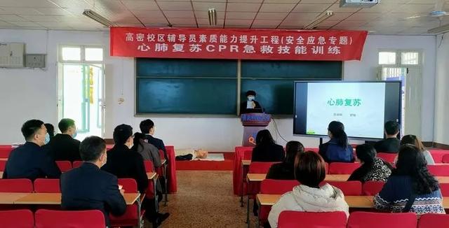 为提高辅导员队伍的应急处理能力,在突发事件中争取“救命黄金时刻”,提升自救互救实效。在第六个全民国家安全教育日到来之际,高密校区全体学团队伍和公寓管理员在青科师生平安港(大学生安全教育基地),学习心肺复苏基本知识,并在高密市中医院医务部、急诊急救部一行5人指导下开展CPR急救技能训练。通过培训,进一步规范了心肺复苏术的操作方法及急救流程,有效提高了紧急救治应急能力。