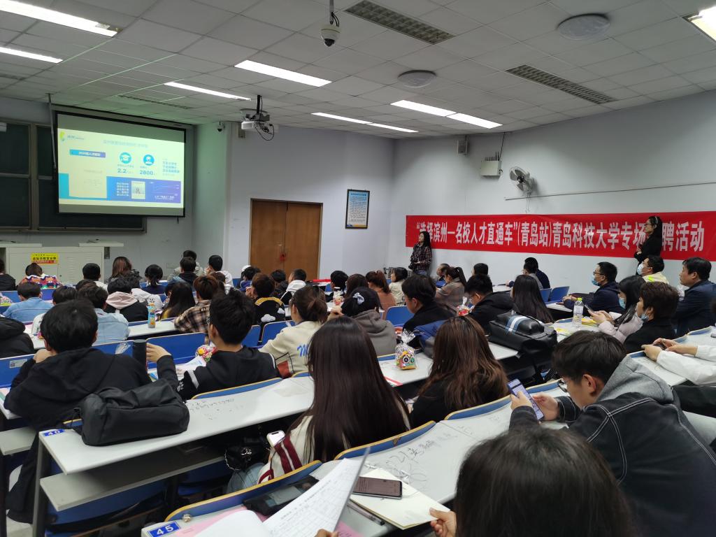 推介会现场播放了《滨州在等你》宣传片,滨州团市委相关负责同志对滨州“青鸟计划”相关情况进行了路演,滨州市人社局负责同志介绍了滨州人才优惠政策,滨州企业代表作了宣讲。通过现场宣传、视频展示,全方位展现了近年来滨州市经济发展情况和招才引智情况。随后,滨州市相关人员与现场毕业生进行了互动,解答学生咨询和就业相关问题,得到了学生的强烈反响。