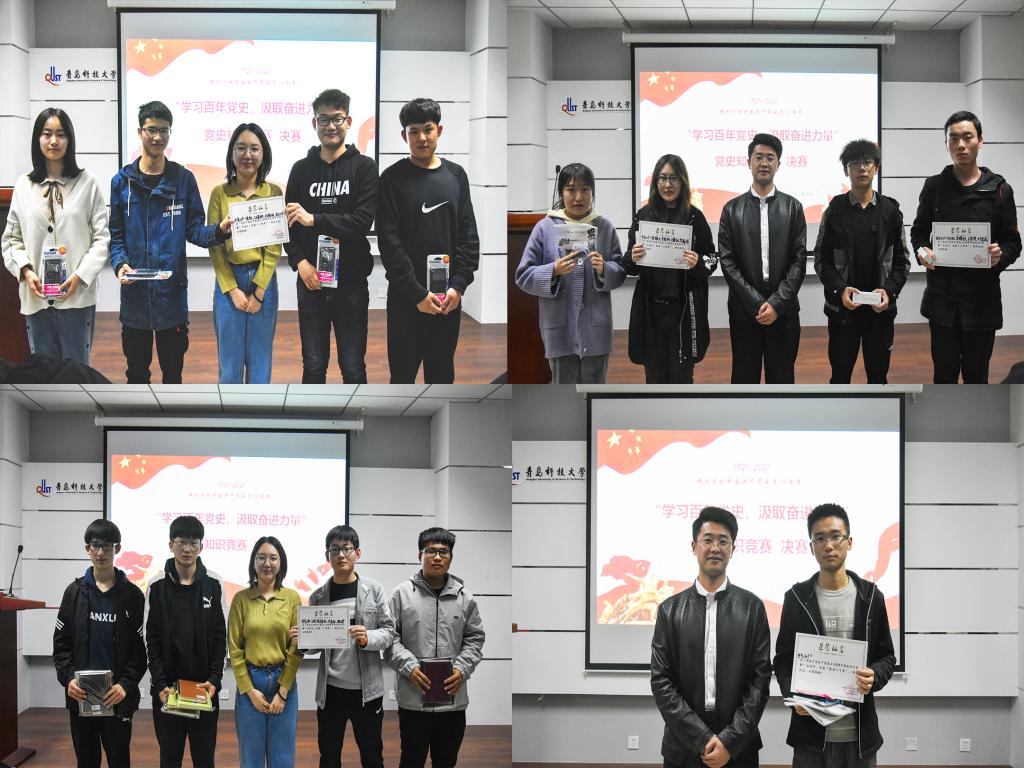 经过前期全员网上答题和四场小组赛,电气204、自化202、电信201、中法201四支参赛队伍过关斩将,顺利晋级决赛。决赛分为必答题、风险题、抢答题三个环节,参赛选手认真准备、沉着应答,现场气氛热烈活跃、紧张有序,体现出选手团结拼搏的协作精神、锐意进取的精神风貌。经过激烈角逐,电信201代表队获得一等奖,电气204代表队获得二等奖,自化202、中法201代表队获得三等奖,电气201代表队经线上投票获得最佳人气奖。学院学工办老师分别为获奖队伍选手颁发证书与奖品。