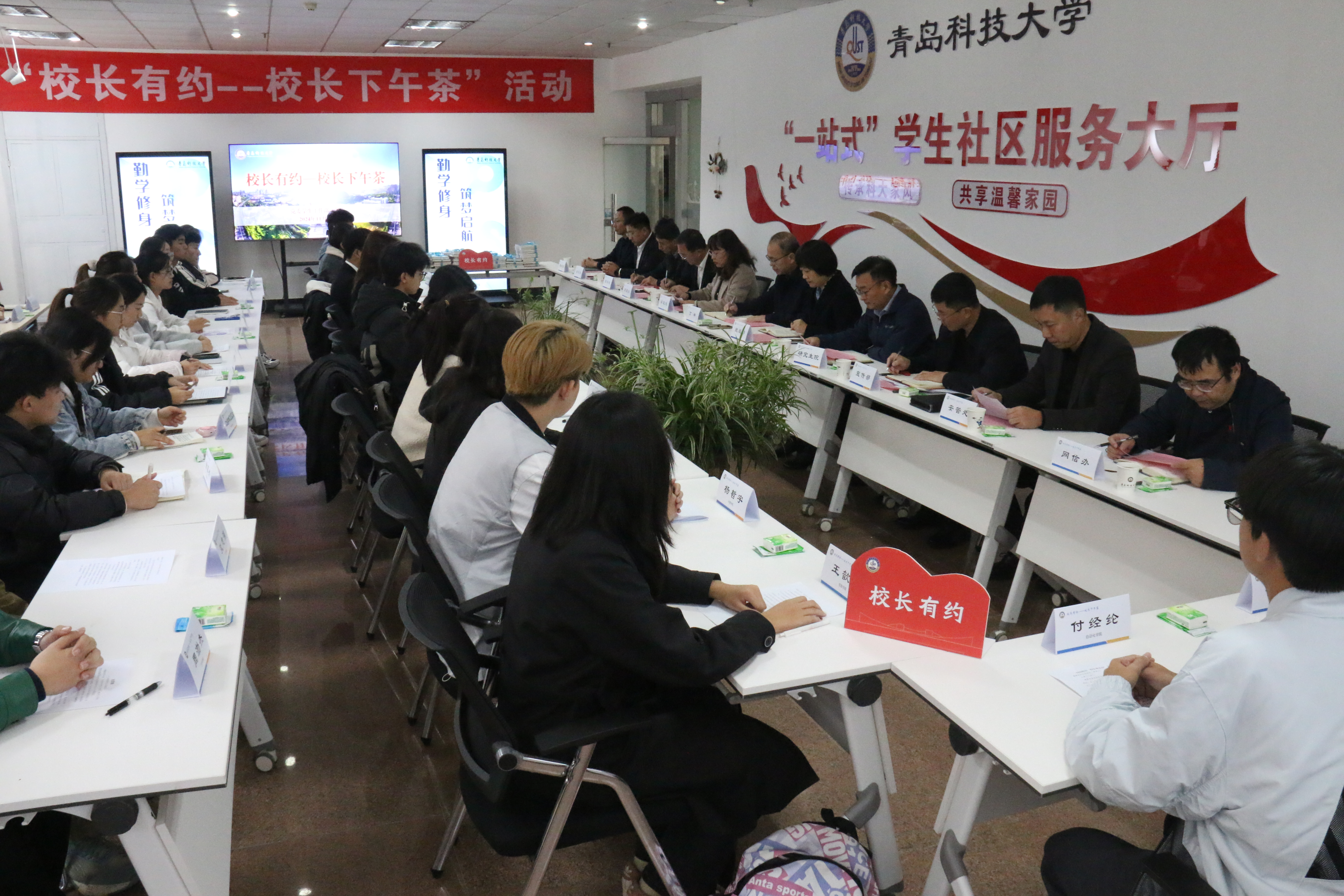 为加强与青年学生的沟通交流,了解学生在学习和生活中遇到的问题和困难,教育和引导学生尽快适应大学生活,11月19日下午,学校在“一站式”学生社区服务中心举办以“勤学修身 筑梦启航”为主题的“校长有约——校长下午茶”学生专场活动。党委常委、副校长丁林,党委常委、统战部部长秦姣出席活动。