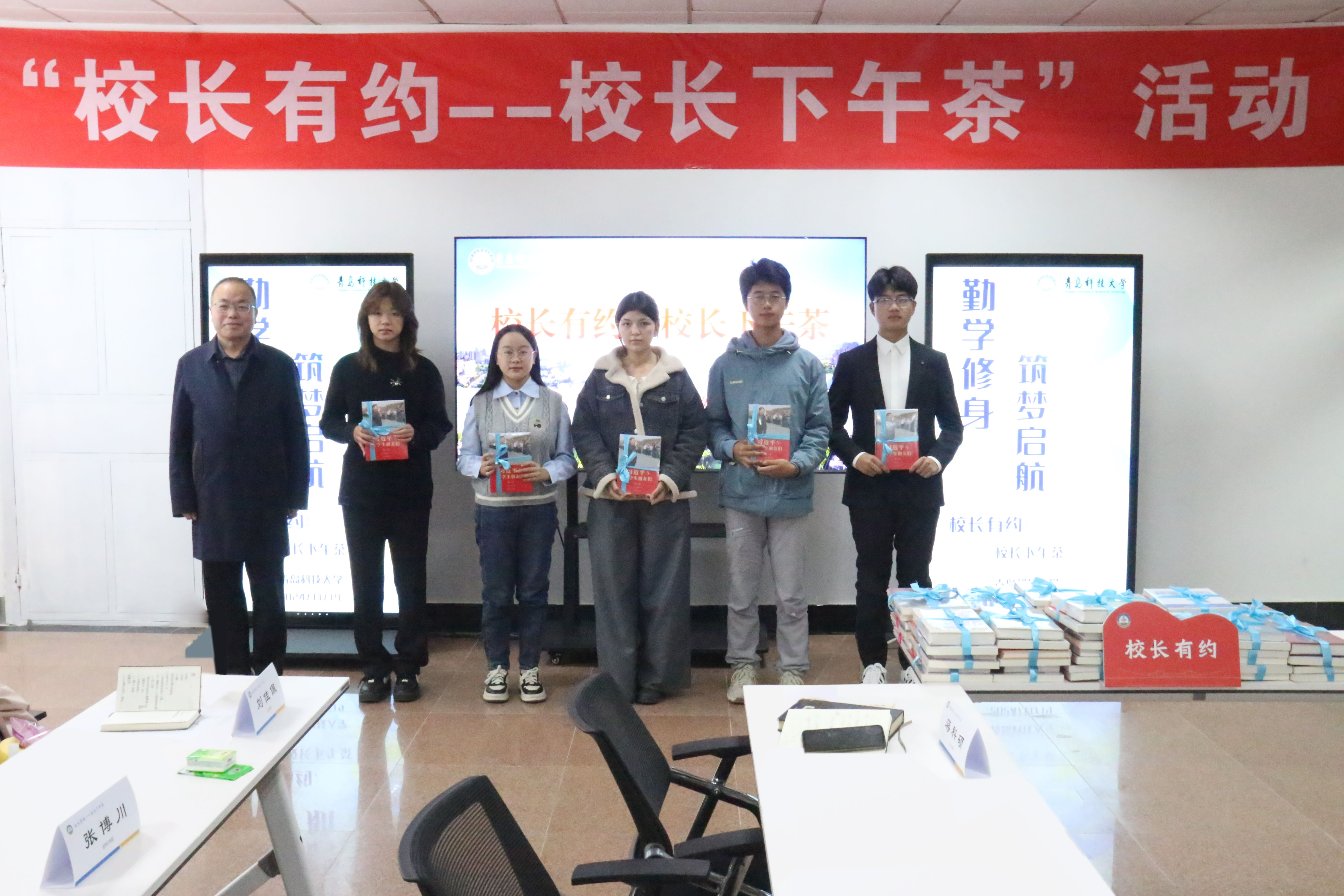 丁林向学生推荐了《习近平与大学生朋友们》第二卷等10本书籍,并向学生代表赠书,鼓励大家践行“读书学习、健康成长、创新创造、艰辛奋斗”的校园主基调,切实把阅读后的学习、思考和收获转化为做好当代青年的责任感和使命感,坚定不移听党话、跟党走,为推进中国式现代化建设贡献自己的青春力量。
