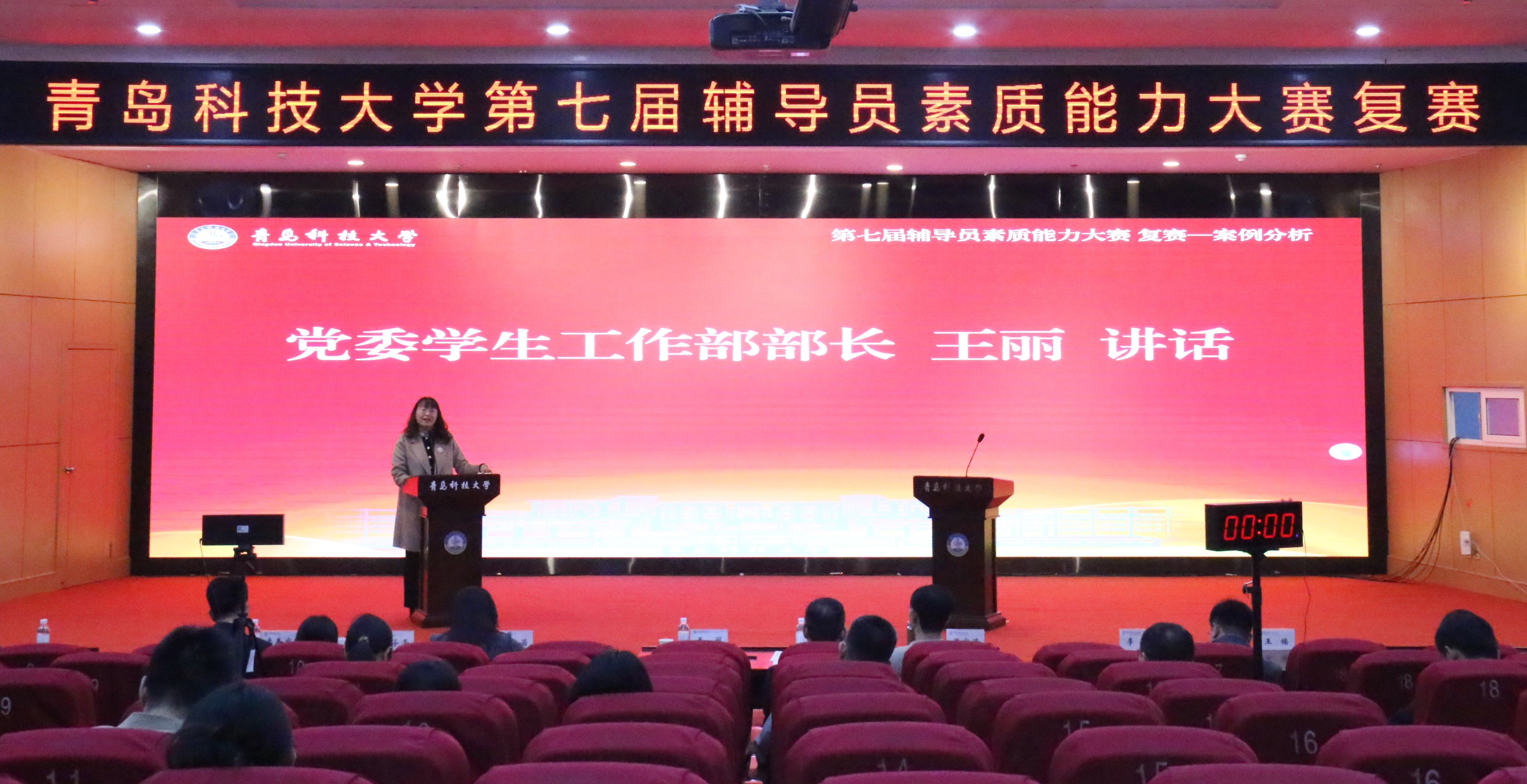 党委学生工作部部长王丽在讲话中对参赛选手表现予以肯定,并结合辅导员队伍建设提出三点希望。一是进一步加强大赛的组织训练,辅导员要在工作中历练、磨炼,提升处理解决各类复杂学生工作的本领;二是坚持大赛与实际工作相结合,聚焦推进立德树人,聚焦把握工作规范,聚焦狠抓关键、重点,聚焦补齐短板、弱项,聚焦帮助学生成长,掌握案例分析方法论并运用到现实工作,不断提升自己的工作能力和水平;三是进一步发挥大赛平台作用,以比赛为契机,不断提升个人综合素养和工作能力,达到比实力、展风采、提素质、炼队伍的良好效果,推动学生工作提质增效。