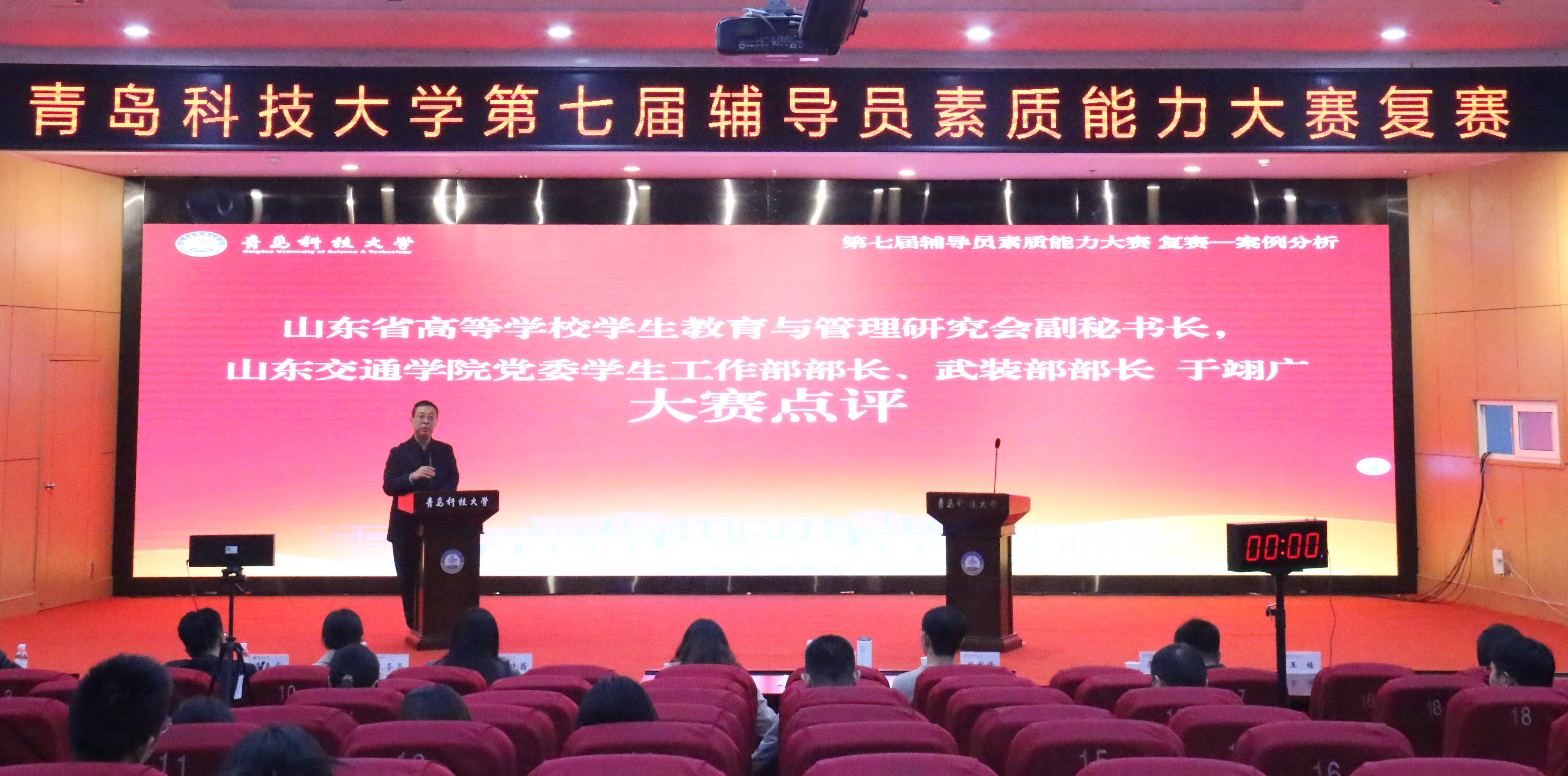山东省高等学校学生教育与管理研究会副秘书长,山东交通学院党委学生工作部部长、武装部部长于翊广对大赛进行了点评。