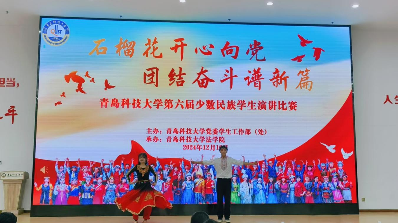 本次比赛共有来自16个学院,8个民族17名选手同台竞技,紧紧围绕“民族团结一家亲”主题,经管学院国贸242班的张硕讲述了自己在党的关怀培养下成长成才、奋斗拼搏的经历,艺术学院音乐241班王莉汶讲述中华优秀传统文化、新时代民族地区发展,法学院社工221班的古丽夏提分享她在军旅生涯中的民族团结真实写照等动人故事,他们以饱满的热情、鲜活的事例和真挚的情感,演绎了一幕幕关于民族团结、家国情怀的动人篇章,充分展现了青科大学子奋斗拼搏的时代担当,传承创新中华优秀传统文化的奋发有为,以及对民族团结和中华民族一家亲的最真挚歌颂。参赛选手的精彩表现赢得了在场观众的阵阵掌声。除此之外,文艺节目环节也精彩纷呈,给现场观众带来了视觉与听觉的双重享受。开场民族舞《石榴花绽放时》以其欢快的旋律、浓郁的民族风情,让在场师生感受到了民族文化的独特魅力;歌曲《爱我中华》,展现了五十六个民族共唱一支歌的真实写照,表达了青科大学子拳拳爱国之情及对党和国家的赤诚之心。