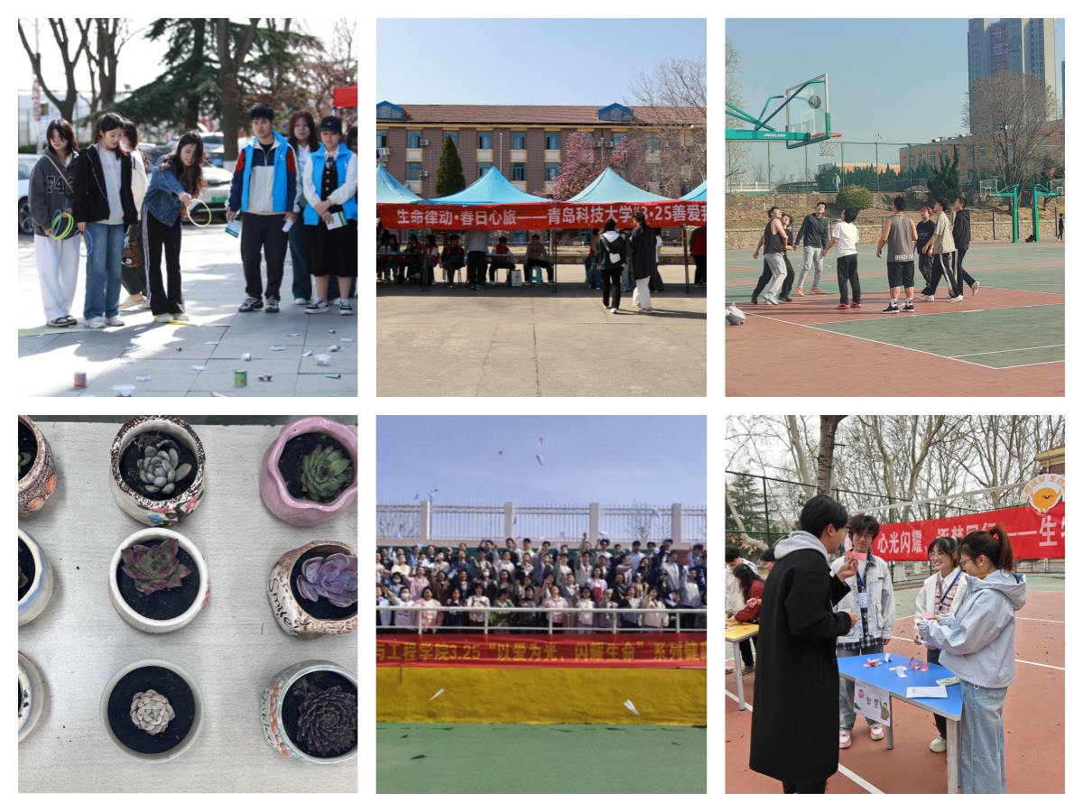 闪耀生命之光,致敬平凡,点亮希望。学校心理中心联合自动化、信息学院举办校级品牌活动——生命律动·春日心旅,线上开展诗画征稿活动,鼓励学生以诗画为媒,描绘生命活力与心灵成长;线下举行春季游园会,设置“生命知识我知道”“时间沙漏种希望”等六大主题活动区,将生命教育融入趣味体验,在春日时光中感受生命律动。生物工程学院创新打造"勇气-智慧-治愈生命能量舱"趣味游戏活动,帮助学生挑战自我,绽放生命光芒。材料学院开展“热血篮球赛”活动,学生们在赛场中展现生命活力与不屈斗志,诠释生命的精彩。机电学院开展植物领养活动,学生通过培育绿植感悟生命成长,养护日志记录破土瞬间,方寸绿意致敬平凡坚韧。环境学院开展"抒写希望,放飞梦想" 放飞纸飞机活动,让轻盈飞翔的姿态诠释生命的诗意与远方。