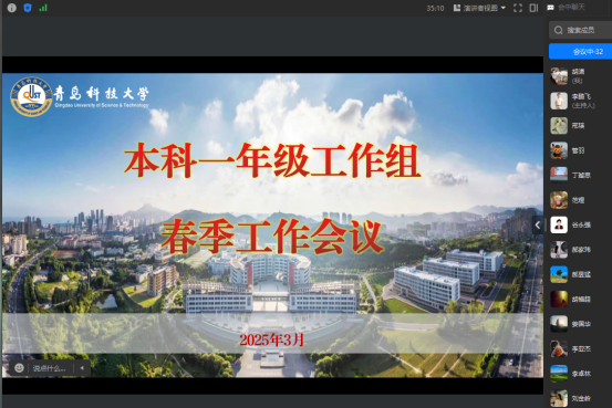 会上对本科一年级工作组第一学期的工作进行了总结,就大一年级新学期工作进行了部署。会议强调要持续强化学风建设,帮助学生做好学业规划和指导,引导学生品德争优、学业争优;持续强化以体育人,有组织开展好体育实践,结合国防教育、结合早操锻炼,引导同学们养成自主运动的健康习惯;要持续强化基础文明教育,注重良好习惯养成,引导学生自重、自省、自警、自励。