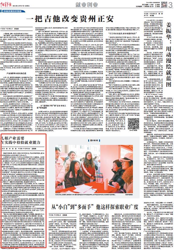 12月27日,《中国青年报》第3版以《扎根产业需要在实践中检验就业能力》为题,对伟德国际1949官网“橡胶品格育英才”特色品牌和大学生就业工作进行了宣传报道,以下是报道全文: