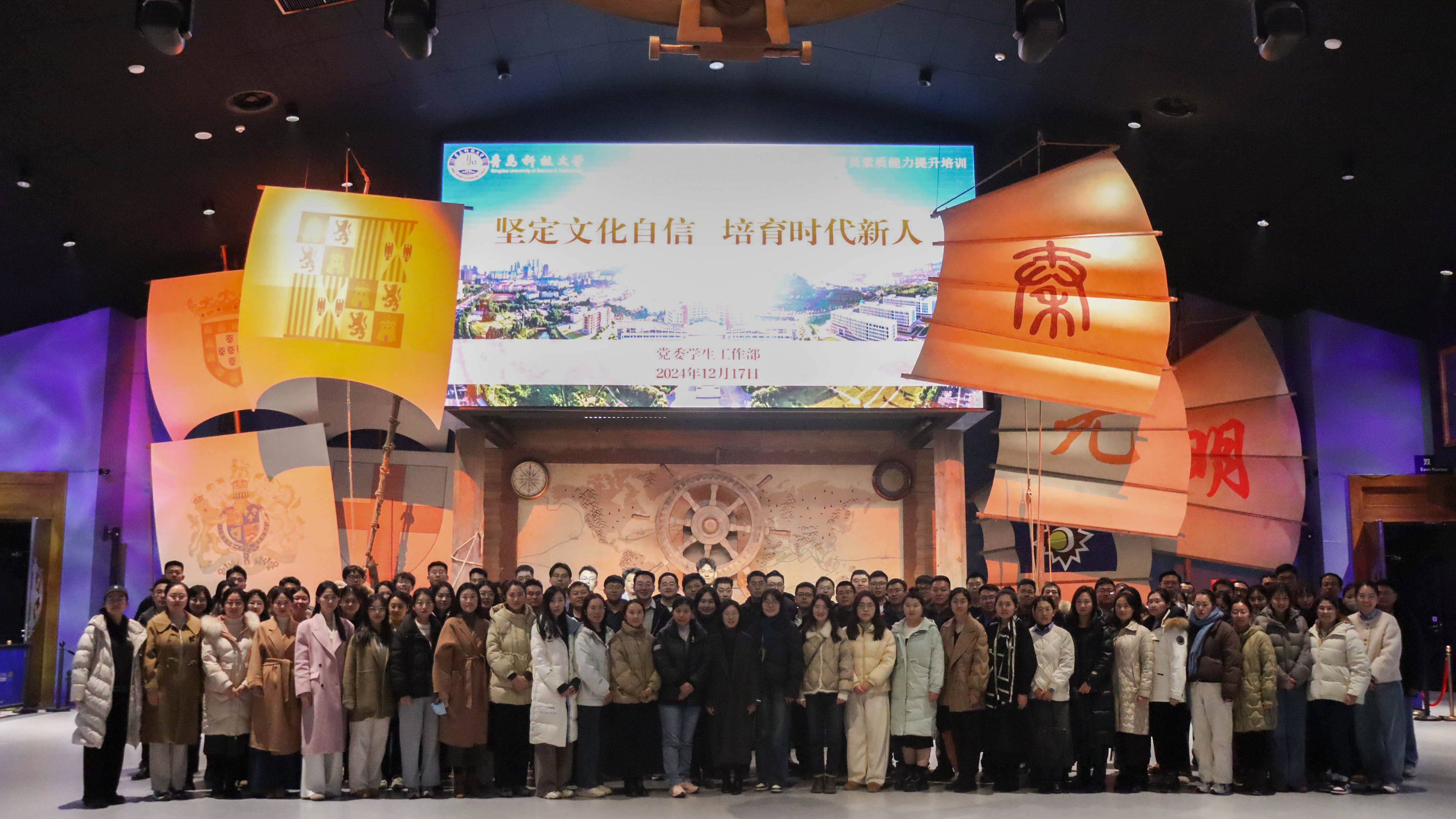 为进一步加强辅导员和团干部队伍建设,增强文化自信,提升文化素养和以文育人能力,12月17日下午,学校开展第四期“两化四有”辅导员素质能力提升暨团干部培训会,主题为“坚定文化自信,培育时代新人”,培训会主要内容是参观奥帆博物馆、观看音乐剧《寻梦沧海》。党委常委、副校长丁林,党委学生工作部部长王丽,校团委书记刘跃宁,党委学生工作部、校团委相关负责同志参加培训会。