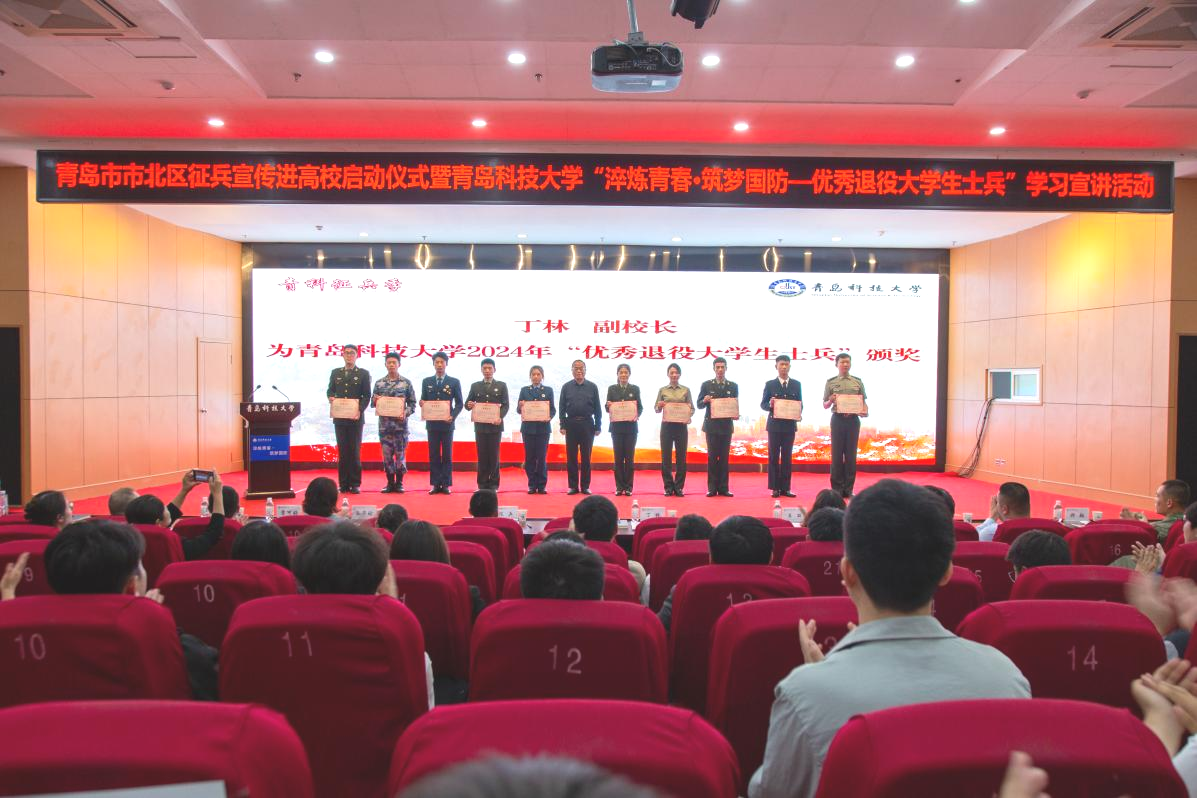 5月28日,青岛市市北区征兵宣传进高校启动仪式暨伟德国际1949官网“淬炼青春·筑梦国防—优秀退役大学生士兵”学习宣讲活动在崂山校区举行。校党委常委、副校长丁林出席活动并为伟德官网2024年“优秀退役大学生士兵”颁奖。市北区征兵办主任、市北区人民武装部部长,伟德官网“国防教育指导专家”陈兵为新一届“青科军协”学生骨干颁发聘书并作征兵动员宣讲。校党委学生工作部部长兼武装部部长王丽宣读了《关于表彰伟德国际1949官网“2024年优秀退役大学生士兵”的决定》等若干决定通知文件。