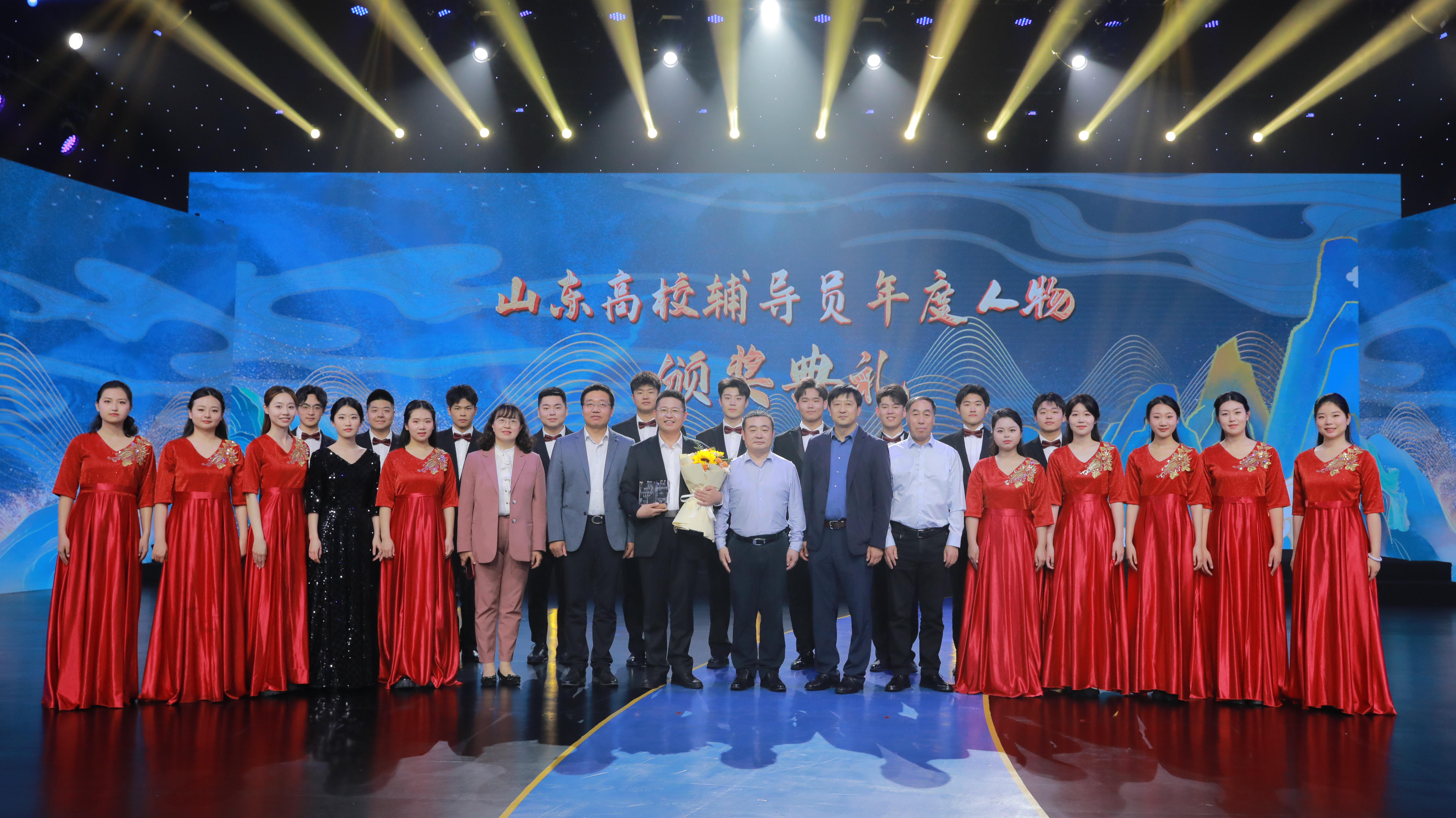 5月8日,由中共山东省委教育工委主办、山东教育电视台承办的2023年“山东高校辅导员年度人物”颁奖典礼在山东教育电视台举办,山东省教育厅总督学王志刚,山东教育电视台党委书记、台长王上,山东省教育厅思政处处长陈成标等出席颁奖典礼,伟德官网党委学生工作部部长王丽、红润初心工作室“音为爱”红歌团受邀参加本次活动。