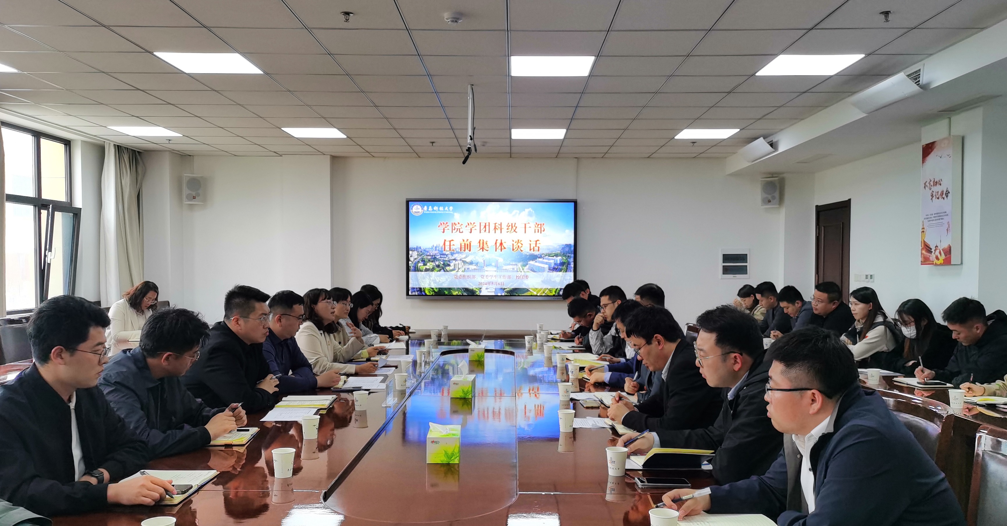 5月6日下午,学校在崂山校区综合服务楼3015召开会议,对新聘任的学院学团科级干部进行任前集体谈话。党委学生工作部部长王丽、党委组织部副部长卢一宾、校团委副书记李航出席会议,会议由党委学生工作部副部长尤亭亭主持。