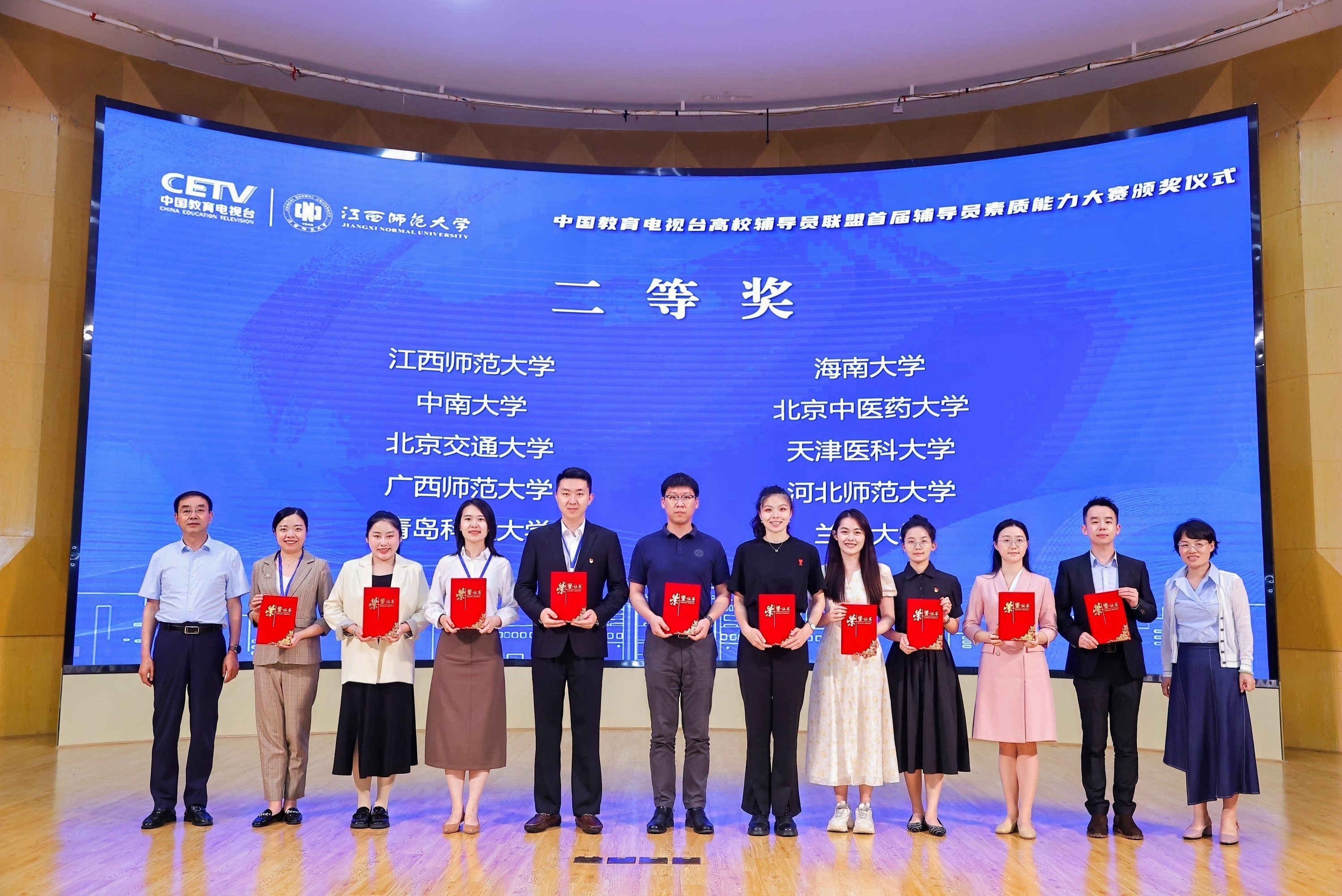 本次大赛由中国教育电视台、江西省教育厅联合主办,江西师范大学承办,大赛以“初心如磐践使命,奋楫笃行育新人”为主题,旨在搭建辅导员学习交流和实践锻炼平台,推动高校辅导员专业化、职业化发展,提升学生工作队伍的思想政治教育能力,助力高校立德树人根本任务的落实。大赛采取团体赛方式进行,共设基础知识、案例研讨、谈心谈话、理论阐释四个环节,重点考察参赛团队的理论水平和业务能力。大赛共吸引全国62所高校124名辅导员参与,共评选出一等奖5项,二等奖10项,三等奖15项。
