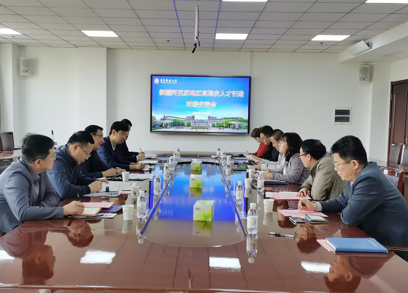 4月24日下午,新疆阿克苏地区高层次人才引进对接交流会在综合服务楼3015会议室举行。阿克苏地委教育工委副书记,地区教育局党组书记、副局长赵鹤征,山东省教育厅职教处副处长魏巍一行到学校对接高层次人才引进。期间,党委常委、副校长丁林会见了赵鹤征一行。