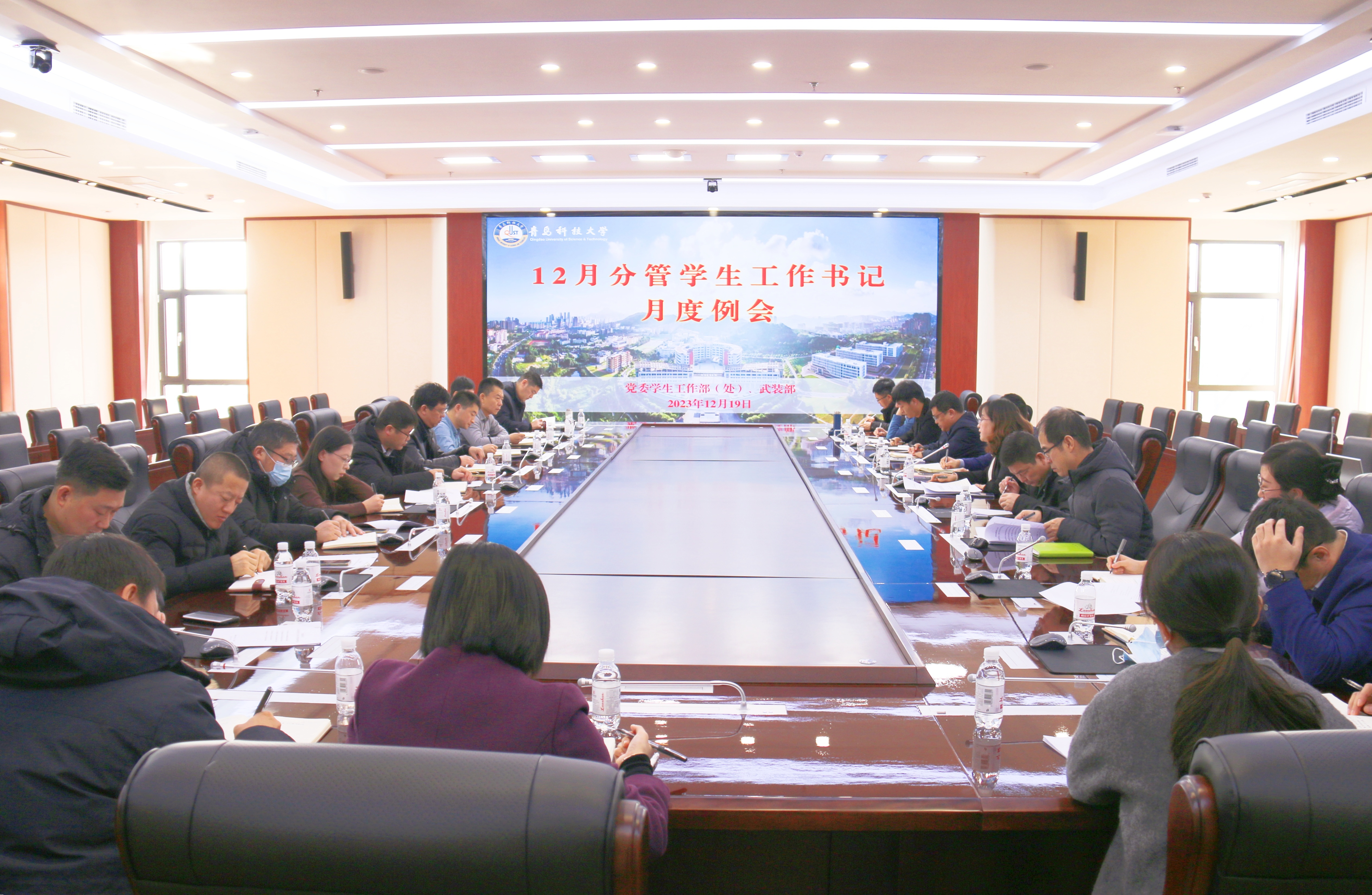 1219日,学校12月分管学生工作书记月度例会在崂山校区赛轮会议室召开党委学生工作部部长王丽主持会议并讲话