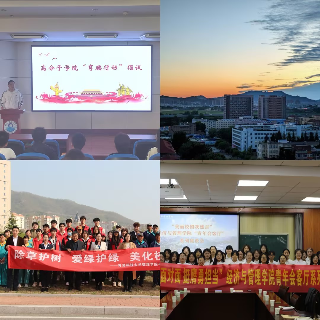 引导学生参与校园建设,树立学生主人翁意识。经济与管理学院立足“青年会客厅”开展“美丽校园我建言”主题座谈活动,学生代表从学习设施、校园环境、文体资源利用等方面积极建言献策。高分子科学与工程学院创新形式,开展“美丽青科,你我共建”弯腰行动、“学校史,知校情”主题宣讲等活动,加深了学生对校园生活的热爱。信息科学技术学院积极开展“文明学舍,志愿先行”共建宿舍环境、“光盘打卡”等实践活动,激励大家不断修身立德。化工学院、材料科学与工程学院将“美育”和“爱校荣校教育”融合,开展“美丽的校园,我的家”等主题摄影大赛,充分展现了青科大厚重的历史底蕴。数理学院开展了“弘扬志愿精神,共创美好校园”校园义工活动,鼓励同学们用自己的实际行动建设更加美好的青科校园。海洋科学与生物工程学院、高密校区组织开展了“我与青科共成长”主题征文,生动阐述大学生活的点点滴滴,抒发个人成长与体会,表达对学校和自己未来的无限憧憬和美好祝福。