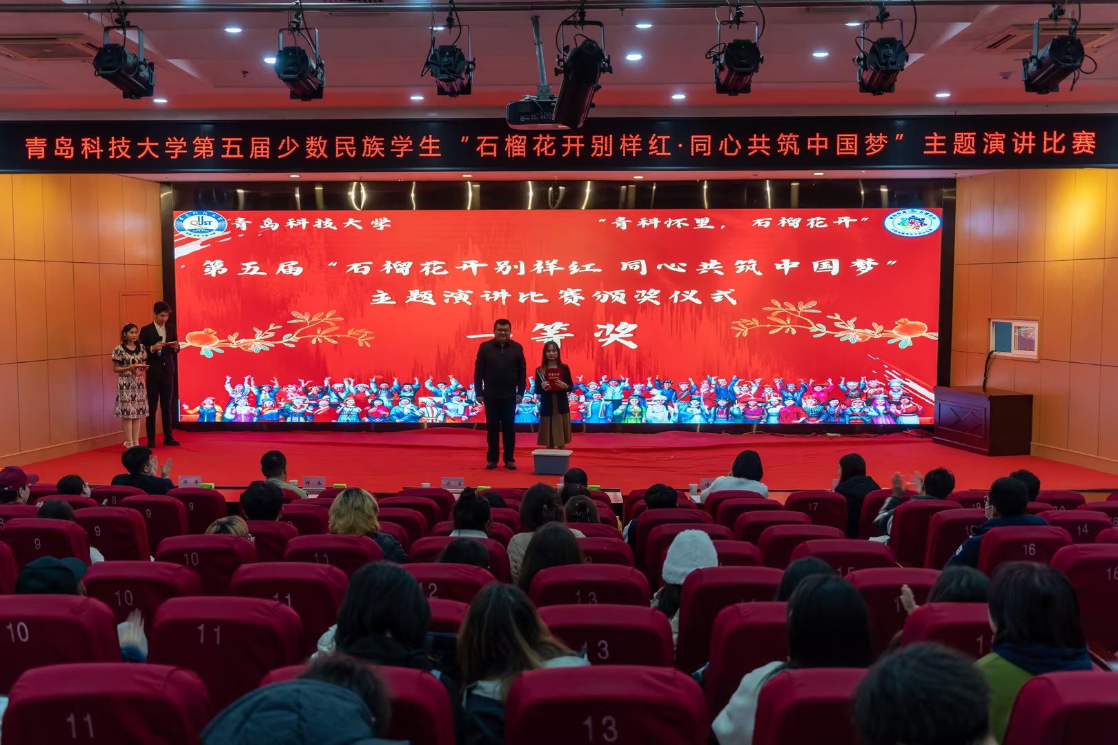12月5日下午伟德国际1949官网“青科怀里 石榴花开”系列活动之第五届少数民族学生“石榴花开别样红 同心共筑中国梦”主题演讲比赛在崂山校区英科(第三)报告厅举行。校党委宣传部、统战部、学生工作部、校团委、保卫处、后勤处等部门负责人出席活动并担任评委。