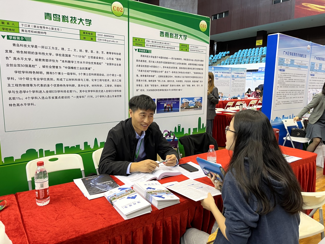 活动现场氛围热烈,学生处副处长兼就业指导中心主任徐华一行向广州市、黄浦区的人力资源市场服务中心和部分企业负责人详细介绍了学校学科专业分布、特色优势专业、人才培养模式、毕业生数量和就业意向,现场发放了2024届毕业生专业及信息资料,走访了康方生物、粤芯半导体两家优质企业,接待了广州国机智能橡塑、广州方邦电子股份等23家校企合作意向企业,与校友企业广州蓝之天化工科技发展有限公司进行了深入交流。结合意向企业的人才需求,积极解答企业代表们的疑问,就人才招聘和专业人才培养进行了深入交流,邀请相关企业来校考察、洽谈。