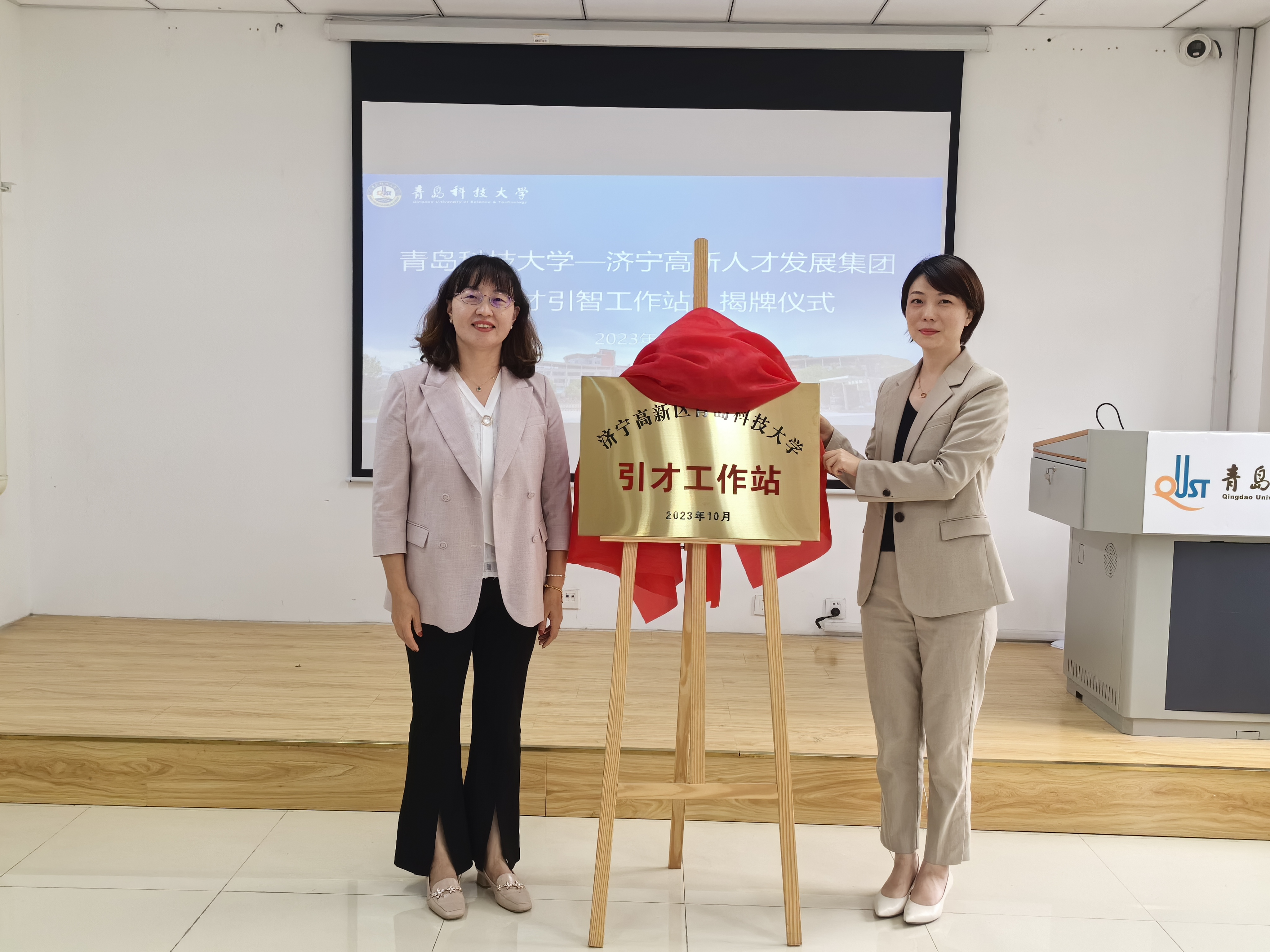 仪式上,王丽与任倩共同为“济宁高新区-伟德国际1949官网引才工作站”揭牌。活动现场播放了学校宣传片,济宁高新区企业代表与济宁籍毕业生代表进行了亲切交流。