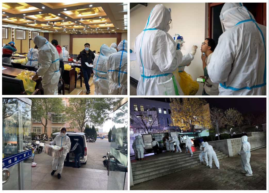 全员上阵,凝聚战“疫”力量。各学生公寓楼27名辅导员楼长凌晨到岗,确定本楼核酸检测路线与方案,384名楼层层长,3131名舍长全力配合,学生公寓网格化管理体系迅速启动。从24小时开机到24小时在岗;从严格落实学生健康监测打卡,到各类信息精准摸排;从每天两轮上门全员核酸检测,到一日三餐送餐上门,全体学工干部迅速转入战时状态。他们有的连续奋战40多个小时没合眼;有的身体出现不适甚至晕倒在岗位上,依然坚持工作;有的面对年幼的孩子,只能视聊寄相思;有的还是准妈妈,依旧冲锋在前……他们以“我在一线”的实际行动和超越“小家”成就“大家”的境界,用心、用情、用爱守护每一位学生。
