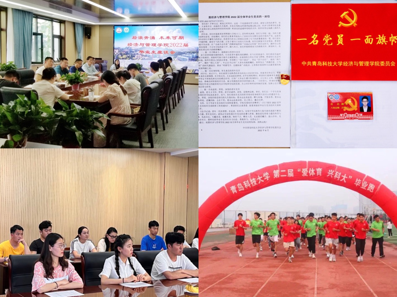 6月10日下午,经管学院党委于经管楼419室开展“青春心向党,接力再出发”毕业生党员最后一课主题教育活动。会上,刘跃宁为每一位毕业生党员赠送了学院设计的“红色锦囊”,锦囊里装有《经济与管理学院党委致2022届毕业生党员的一封信》,党员身份证和一枚党徽,希望广大毕业生党员不忘入党初心,牢记一名党员就是一面旗帜,做理想信念坚定的马克思主义者、做追梦圆梦路上的奋斗者。同时毕业生团支部通过各种形式开展毕业生主题团日活动,为同学们提供一个畅所欲言的交流平台,抒发自己在毕业时刻的所思所感所想,让师生之间充分交流,表达依依惜别之情的同时畅谈未来远大理想。
