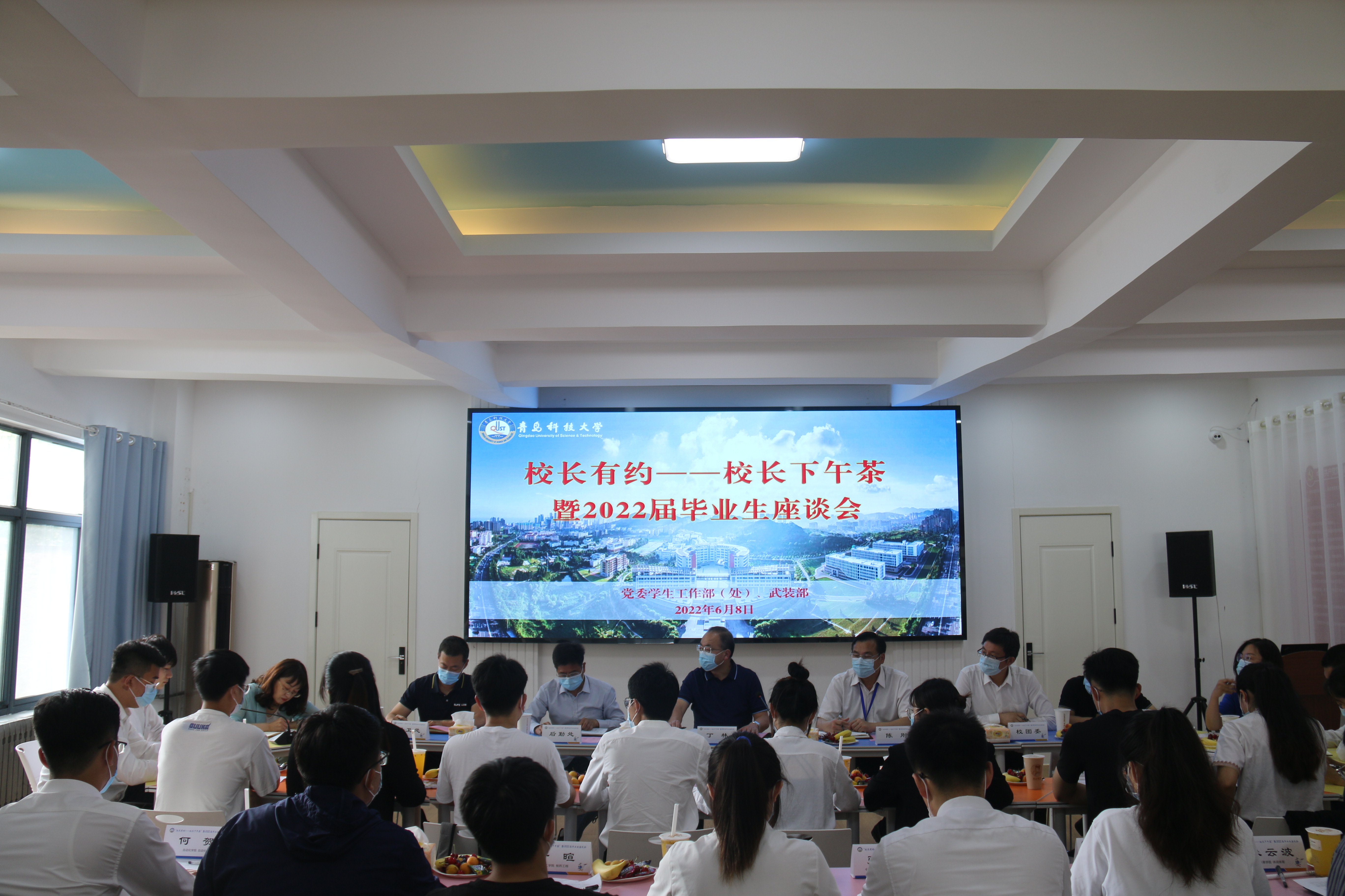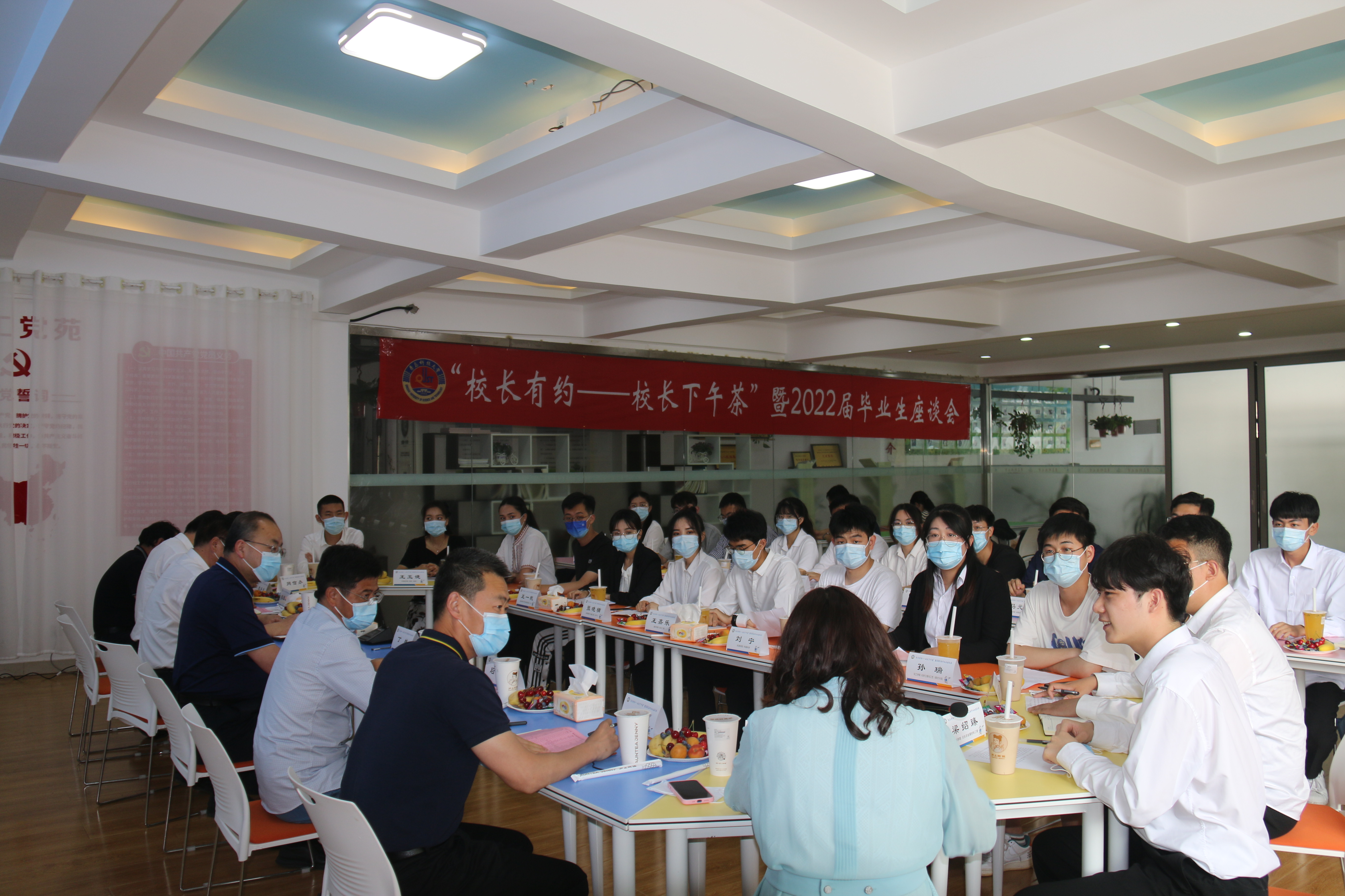 6月8日下午,伟德国际1949官网“校长有约——校长下午茶”暨2022届毕业生座谈会在崂山校区心理中心举行。党委常委、副校长丁林,党委常委、宣传部部长陈刚出席会议并讲话,座谈会由学生工作处副处长王丽主持。