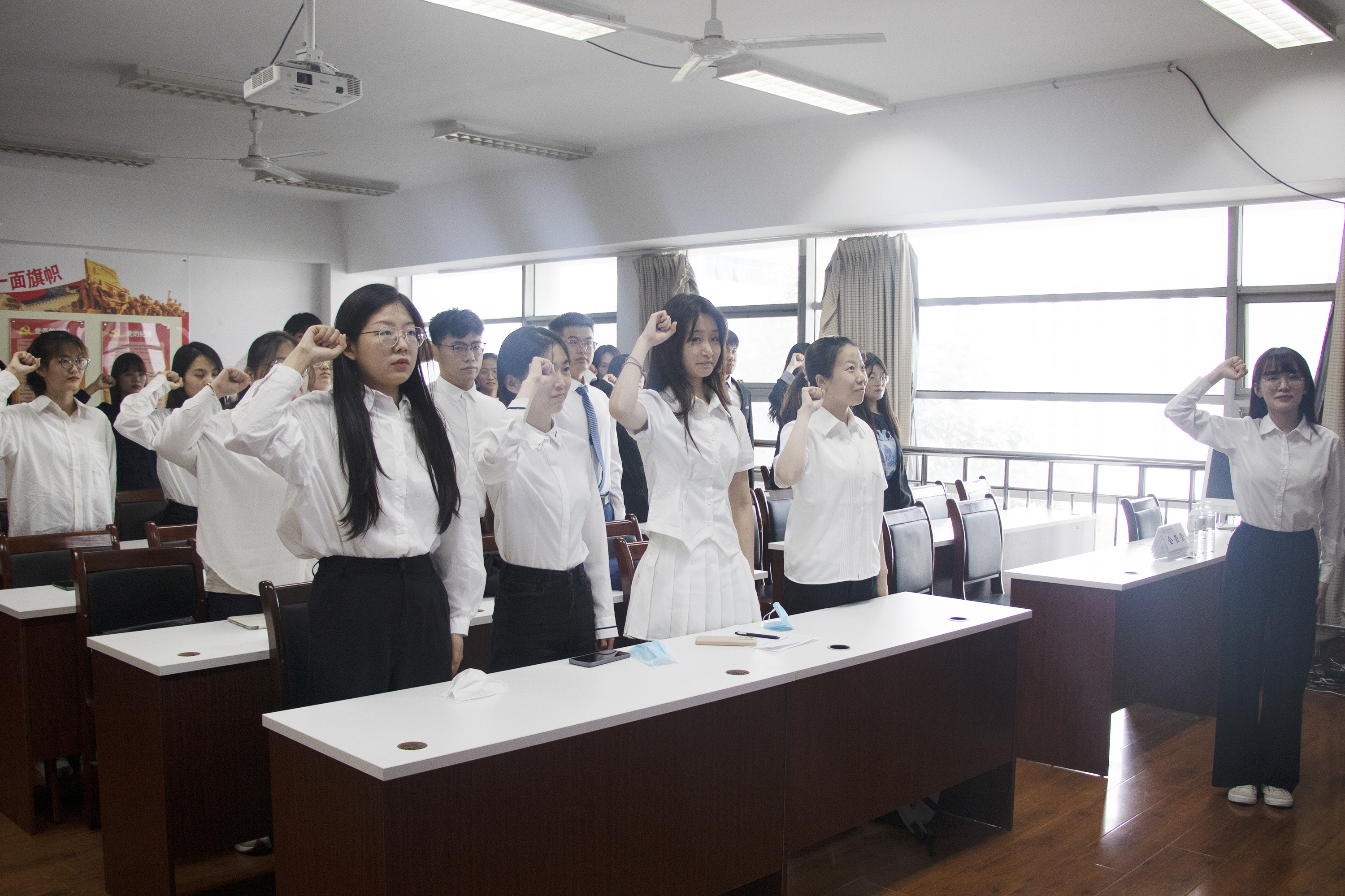 随后,毕业生代表全体起立,在领誓人的带领下,进行廉洁从业宣誓,并郑重地在廉洁从业承诺签名墙上签上自己的名字。