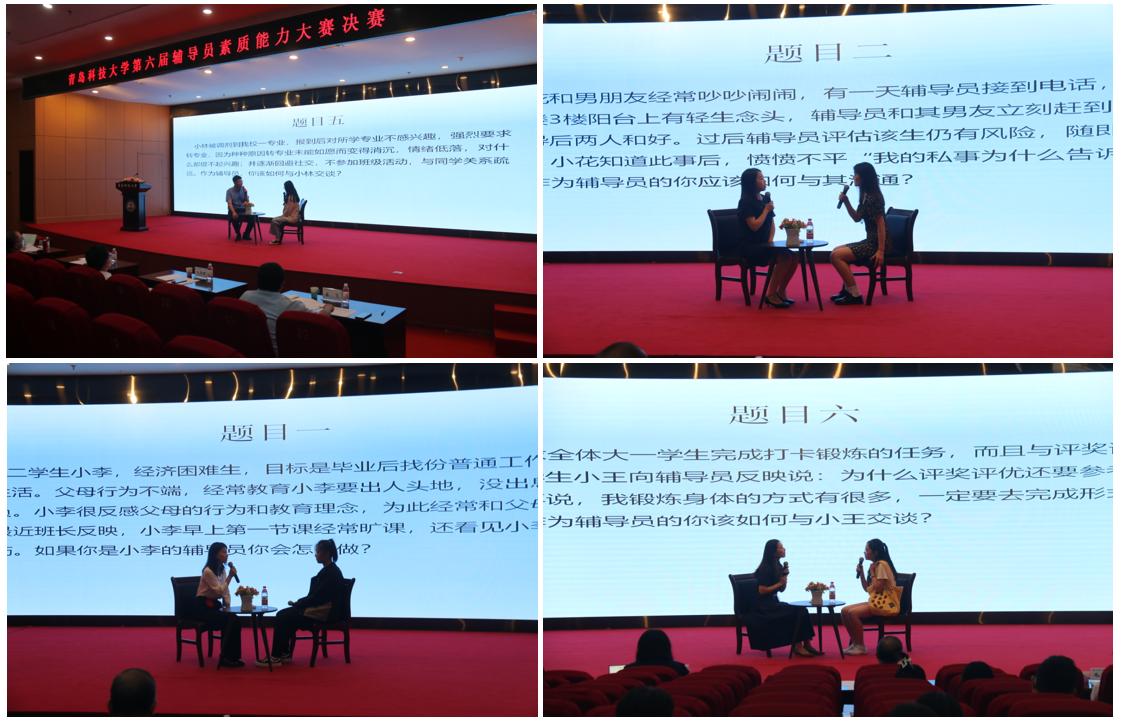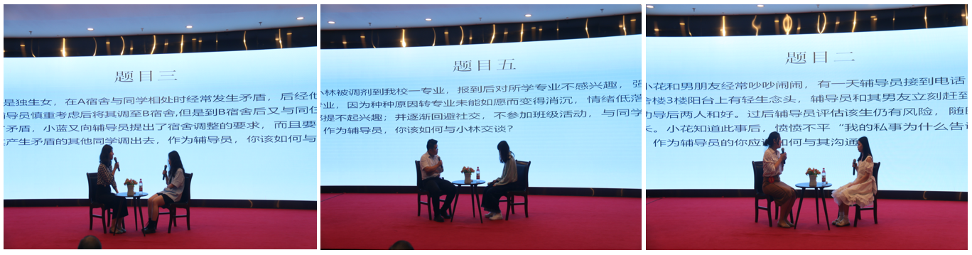 经过精心备赛和严格选拔,全校共有11名辅导员入围决赛。决赛设置谈心谈话环节,参赛辅导员结合学生工作经验,快速抓住问题关键点,找到矛盾突破口,思路清晰、重点突出、逻辑缜密,通过共情、理解、认同等方式,有理有据地解决学生们日常学习、生活中遇到的种种困惑,再现了辅导员日常工作场景,有亮点、有特色、有创新,充分展现了学校辅导员良好的精神风貌和过硬的职业能力。