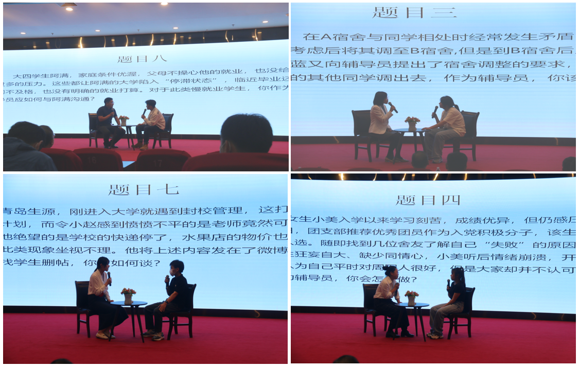 各学院分管学生工作书记、全体专职辅导员现场观摩了比赛。高密校区辅导员通过网络直播收看了此次比赛。