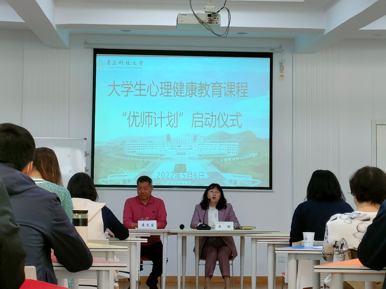 为贯彻落实《教育部办公厅关于加强学生心理健康管理工作的通知》(教思政厅函〔2021〕10号)文件精神,进一步加强心理健康教育课程建设,提升教师教学技能,近日,心理健康教育课程“优师计划”启动仪式暨教师系列培训在崂山校区心理中心团辅室举行,学生处副处长王丽主持仪式,40余名授课教师参与。