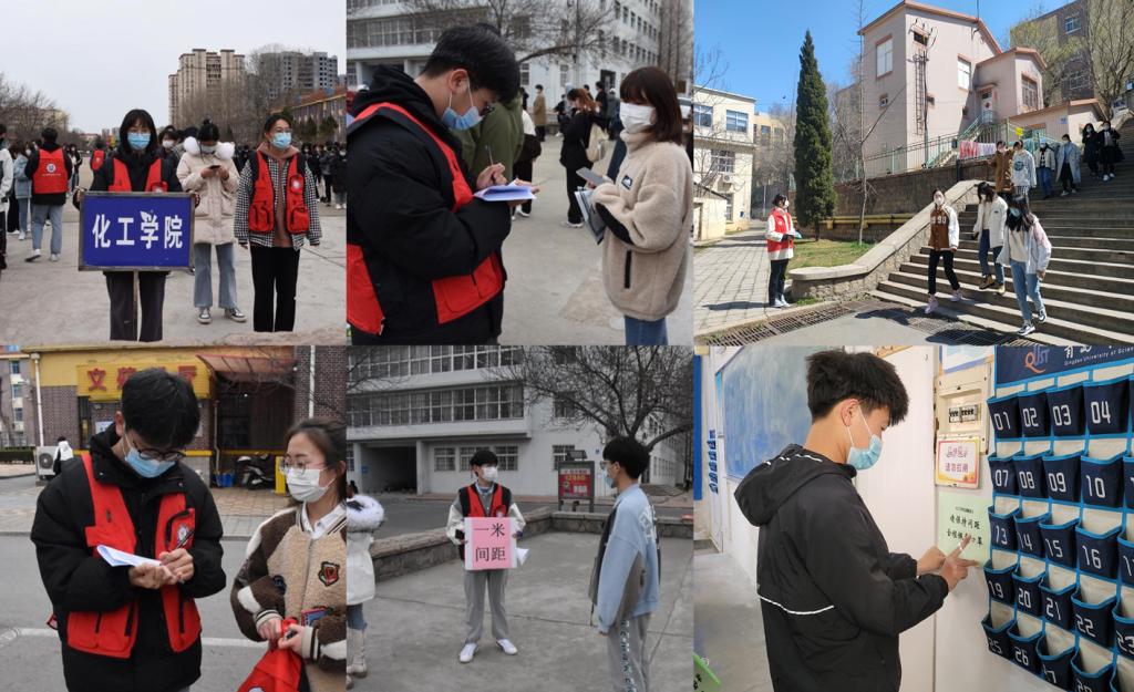践行青春,在志愿服务上展现作为。学院及时总结经验、创新方式方法,构建了学生党员网格化管理体系,设立“亮身份,践承诺,树形象”党员先锋岗,充分发挥学生党员安全巡查队、宿舍先锋队、志愿突击队的辐射作用,暖人心、解人难、分人忧,每日平均帮扶和解决学生问题10余件。学院每天安排约30名学生志愿者,在教学楼、图书馆、实验楼等人员密集场所,分时段、分批次、分区域进行疫情防控志愿服务,在一教所有教室张贴“温馨提示”,指导学生科学规范佩戴口罩,做好个人安全防护。