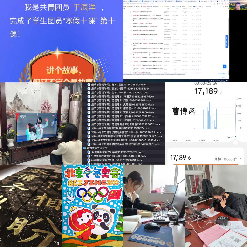 经管学院持续构建“五育并举”协同育人模式,助力学生实现黄金期“弯道超车”,强化德育提升素养,组织全体学生参与“传承红色基因、争做时代新人”红色征文活动并积极投稿学校;开展“我的读书日记”读书活动,并分阶段引导学生做好读书笔记、撰写读书报告;组织学生积极开展“寒假十课”学习并跟踪进度,以主题团课的形式组织全体学生学习共青团十八届六中全会精神,组织全体学生观看冬奥会开幕式,并积极参与“迎冬奥,我来赛”网络知识竞赛,激发冬奥会等时政热点的思想政治教育功能。强化智育巩固学业,引导全体学生聚焦自身主责主业,成立专业内部学习互助组开展课程补习,利用假期时间及时查漏补缺;围绕科创竞赛全面铺开,组织全体学生积极参与科创赛事,并就学生组队、选题、指导、ppt制作、参赛经验分享及心理辅导等开展“一条龙”服务,助力学生培育科创思维。强化体育夯基固本,组织学子积极响应学校“科大与你一起ying冬奥·年”活动,利用微信运动、运动器械等开展体育运动,确保每日步数 6000 步以上、运动里程 2Km 以上、运动时长超过 40 分钟,以实际行动积极响应学校“爱体育·兴科大”号召。强化美育涵养情感,充分利用春节、冬奥会契机,组织学生积极参与“伟德国际1949官网首届“我和我的家乡”短视频/摄影大赛”“一起ying冬奥·年”活动,鼓励学子将情感付诸笔端与镜头,用书法、绘画、vlog视频作品等表达对春节及北京冬奥会的祝福。强化劳育淬炼意志,组织全体学生积极参与寒假社会实践,积极发挥各年级学生干部、党员骨干的先锋模范和桥梁纽带作用,围绕“青鸟计划”、“一起云支教 共同迎冬奥”专项活动等实践开展全程指导,引导学子在实践锻炼中磨练意志、增长才干。